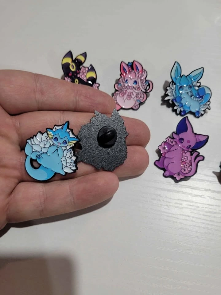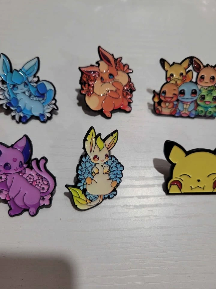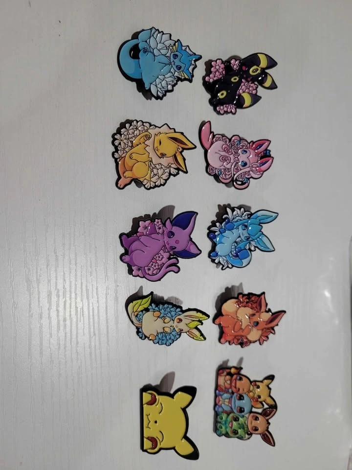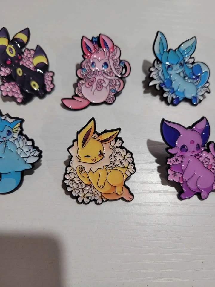 Pins are $5 each, buy 3 get one free. I have 10 different pins available: 8 are Eeveelutions, 1 is Pikachu, and 1 is a mix. Pickup is in Spruce Grove. I'm available most days in winter if you give me a specific time. I will be posting more anime and Pokemon related pins as they become available.