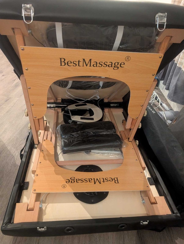 This is a BestMassage massage table in great condition, ready for its next owner. It's lightweight and portable, perfect for professionals or anyone needing a convenient massage solution.