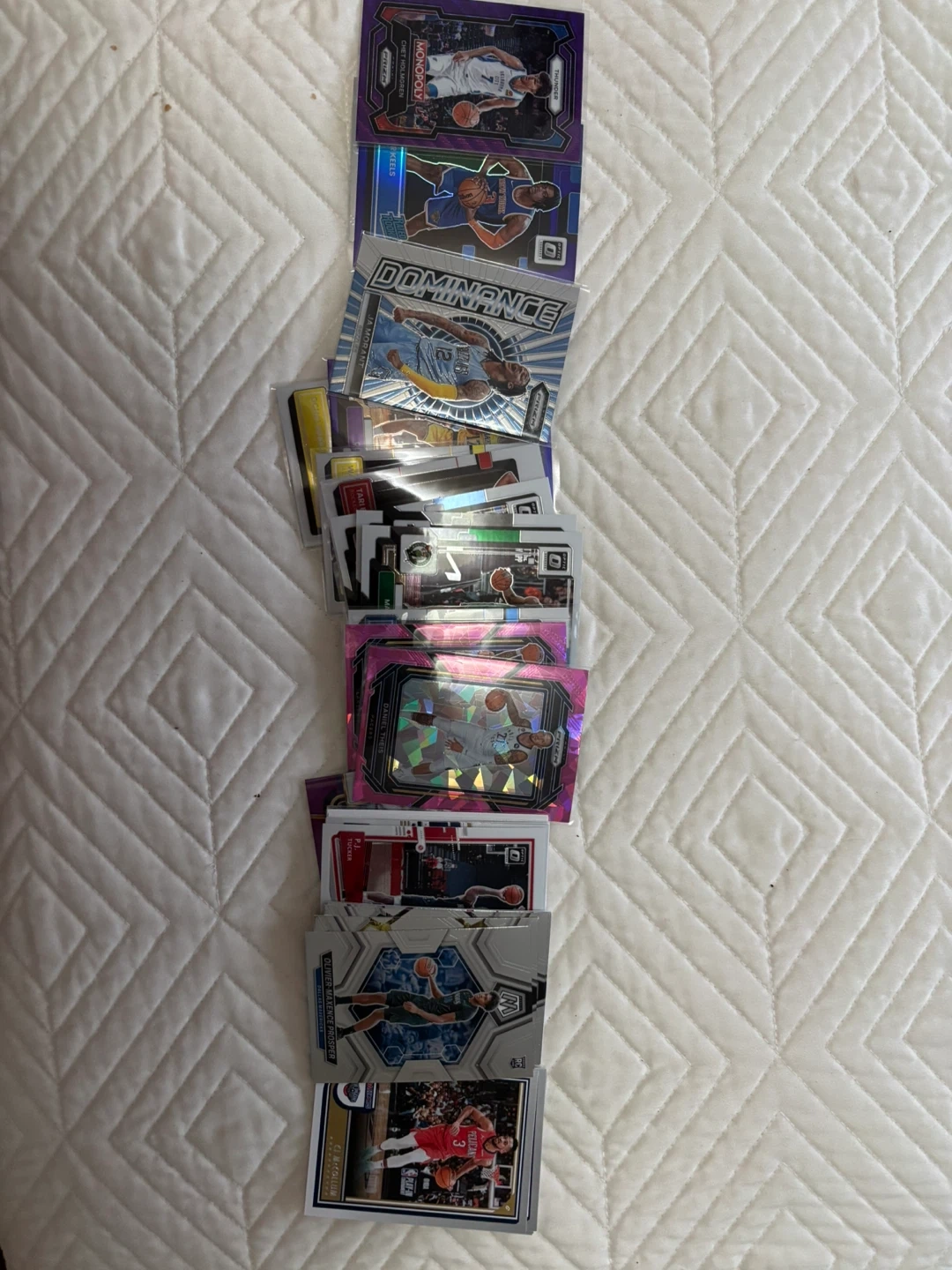 New, all bought from boxes. Includes Optic, prizm, mosiac, select, illusions and hoops cards