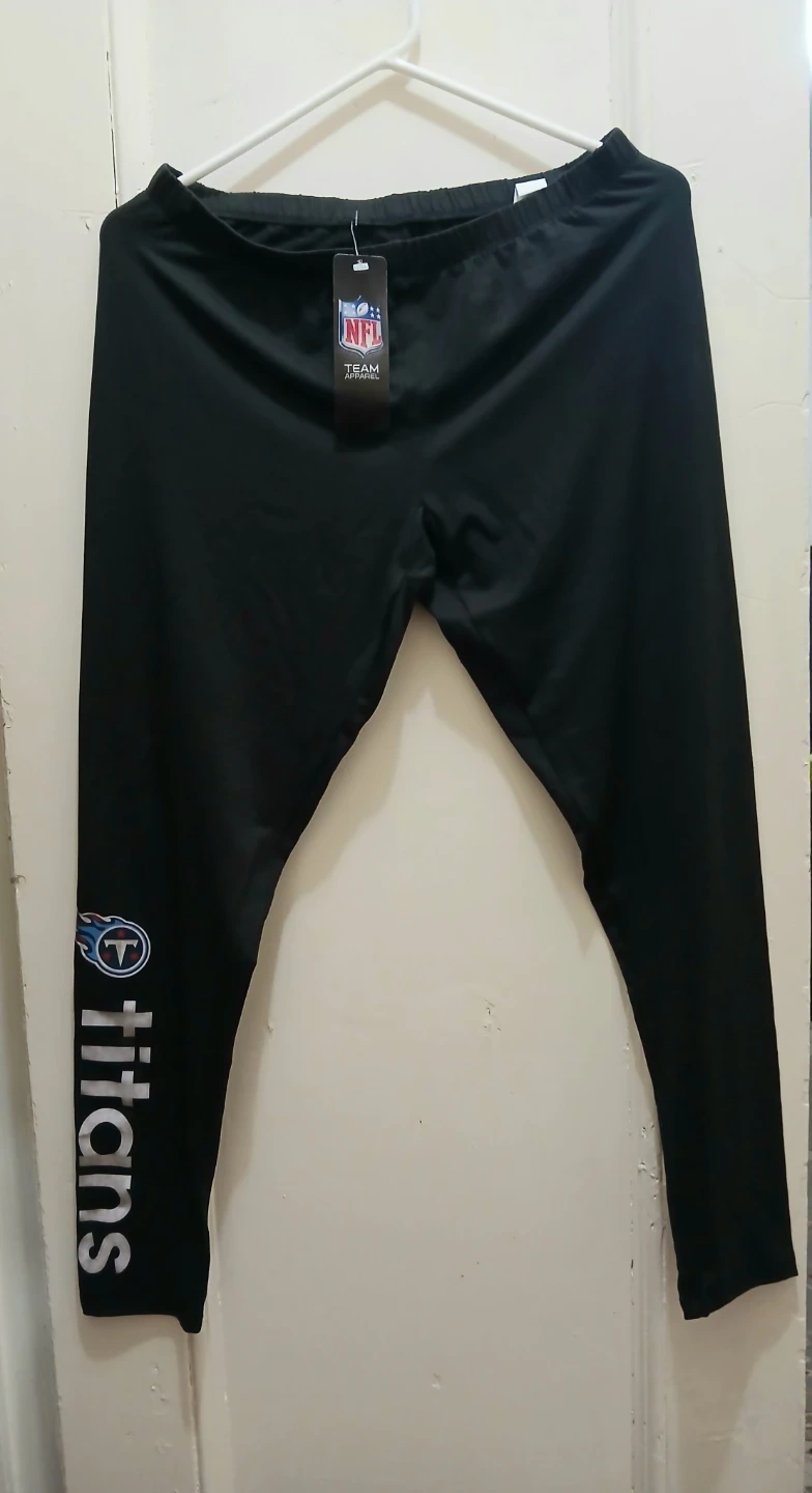 Show your team spirit with these officially licensed NFL Tennessee Titans leggings. They feature the Titans logo on the left leg. Made from a comfortable blend, they're perfect for game day or casual wear. Tag attached, new condition.