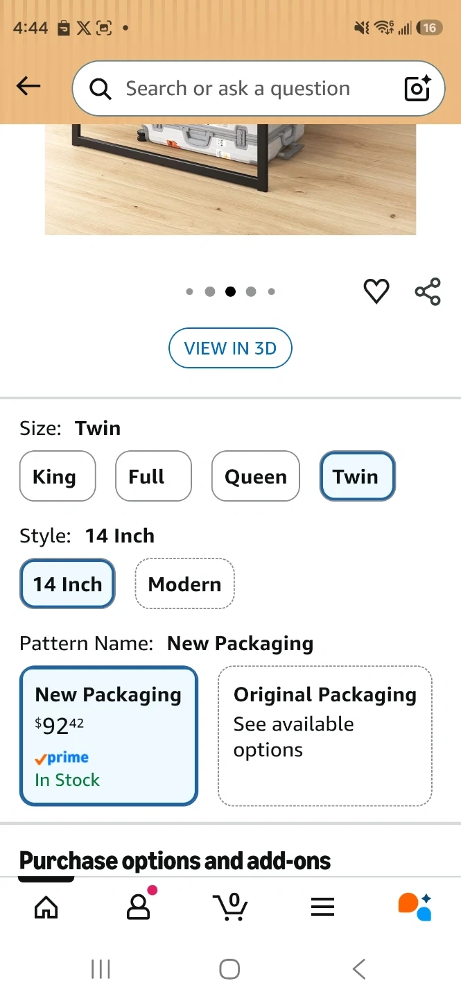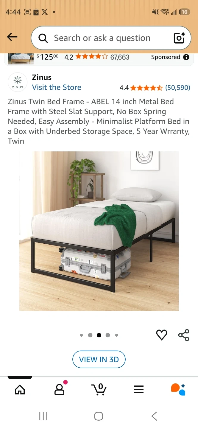 This is a Zinus twin size, 14 inch high metal platform bed frame. It has underbed storage space and includes assembly instructions and hardware. Steel slat support. It's easy to assemble!
