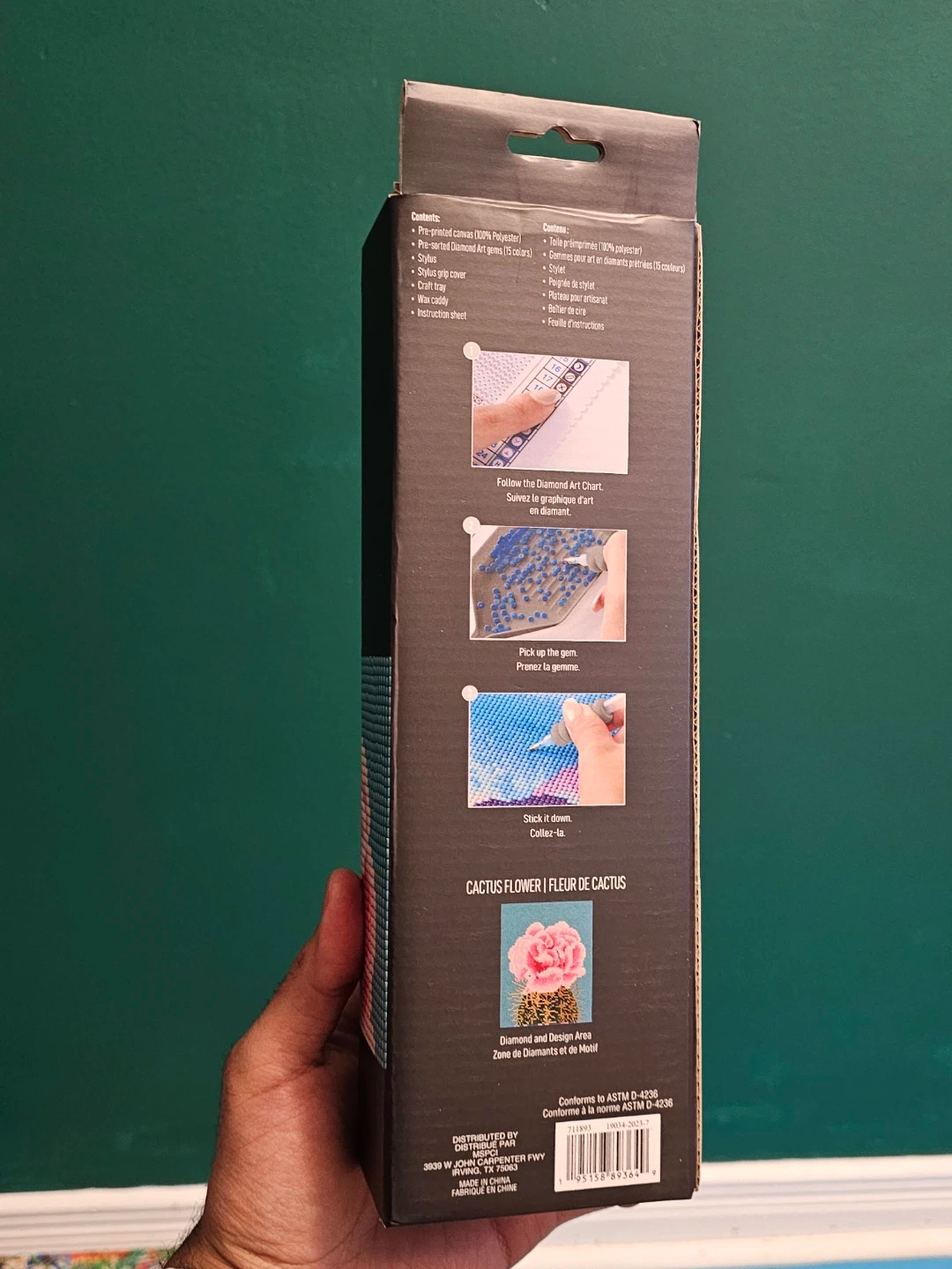 This MAKE MARKET Diamond Art Kit features a 'Cactus Flower' design. It measures 8 by 10 inches (20.3 cm x 25.4 cm). The kit includes pre-printed canvas, diamonds in 25 colours, stylus grip cover, wax caddy, and instruction sheet.