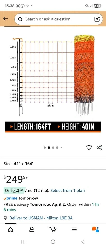 Brand new, never used complete electric net fencing setup with pre-assembled posts. Easy to install and ideal for temporary or movable setups.