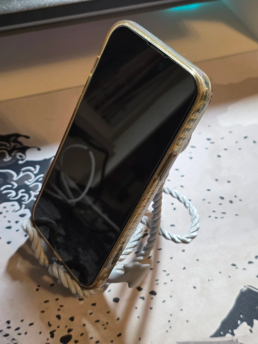 60This is a really cool anchor-shaped phone stand! It's perfect for using your phone hands-free, or just as a neat piece of decor for your desk or shelf