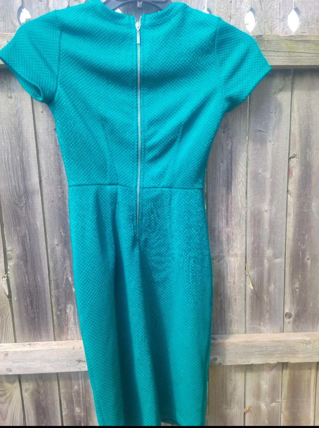 Teal Textured Short Sleeve Dress with Zipper Back
