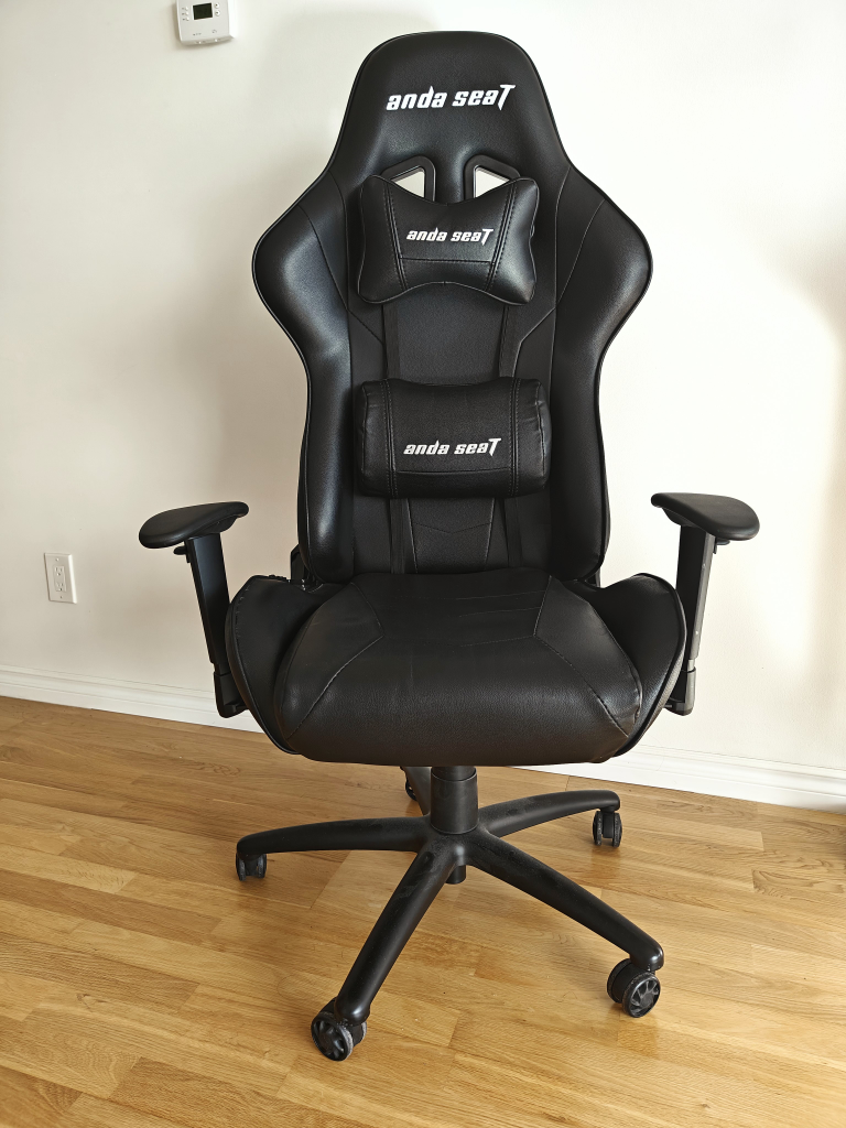 Bought for 399 and selling only due to space constraints. Comes with company provided neck and back support. Wheel need lubrication. Price negotiable More information: https://www.staples.ca/products/2956058-en-anda-seat-e-series-gaming-chair-blackred