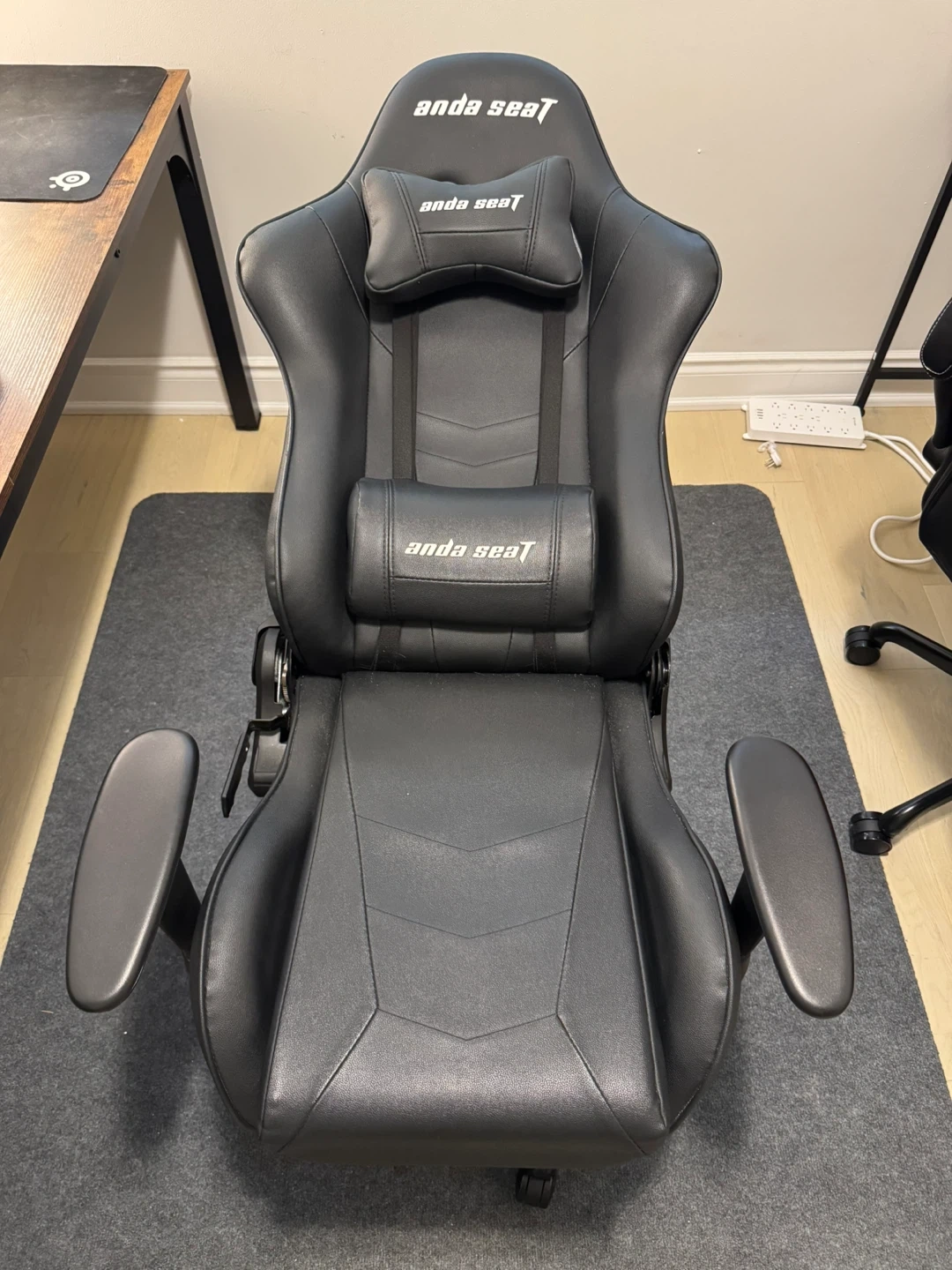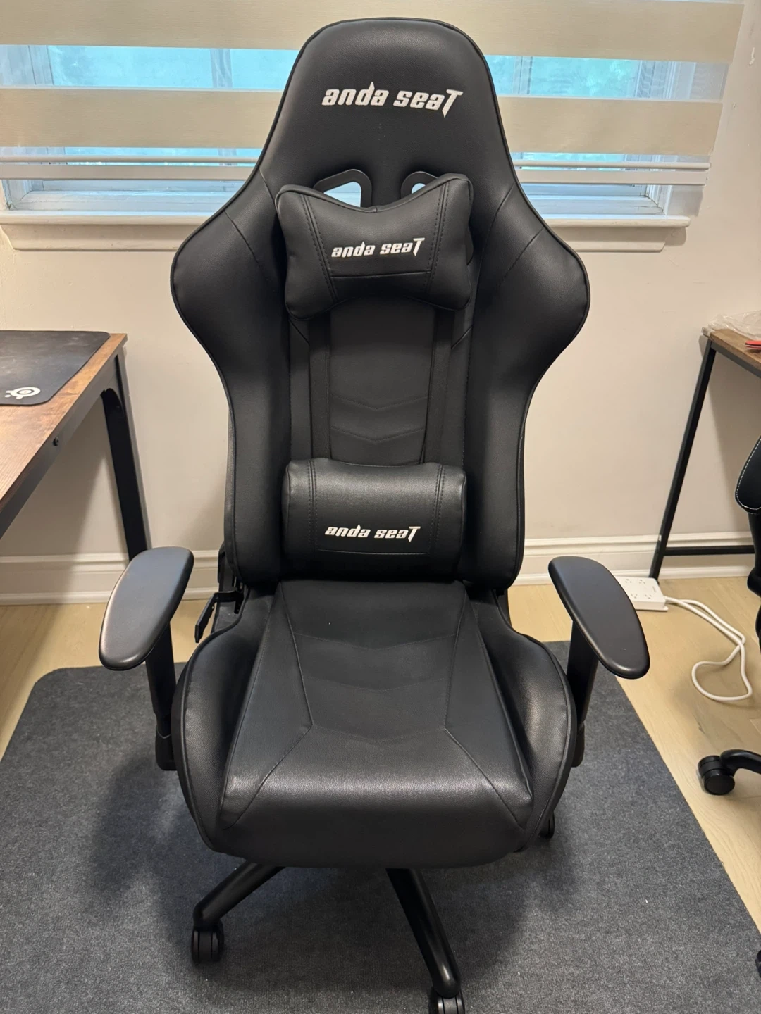 68Selling a black Anda Seat gaming chair! It's in great shape and super comfy for long gaming sessions or working from home. It features a high back and adjustable armrests for maximum support. The chair also has lumbar and headrest pillows for extra comfort
