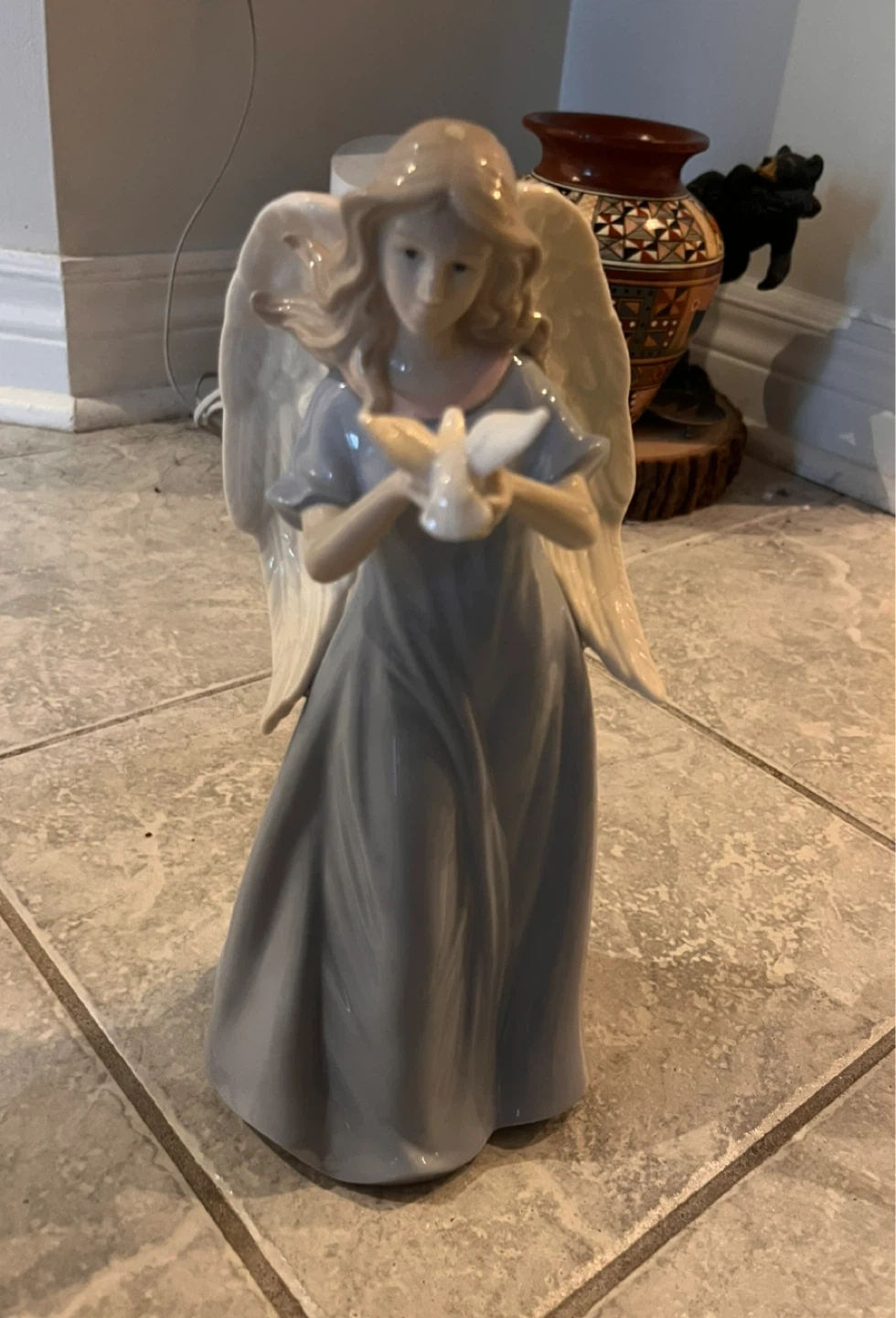 87This is a lovely angel figurine holding a dove. It's in great shape and would look beautiful in any home. The figurine is made in China.