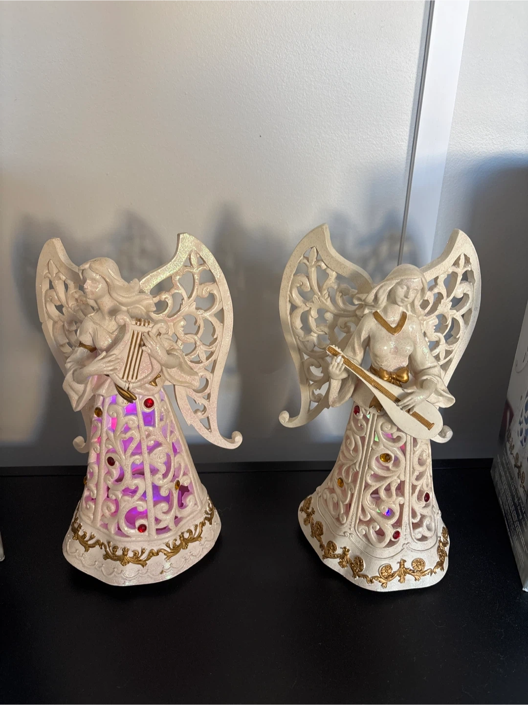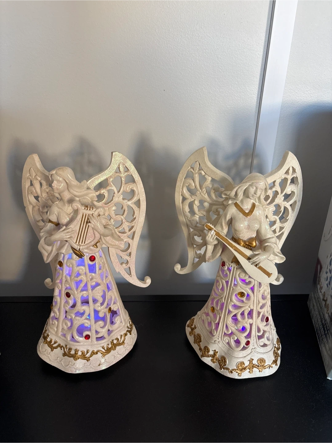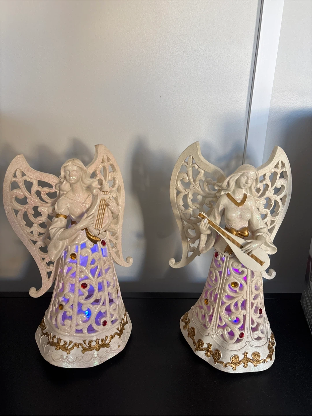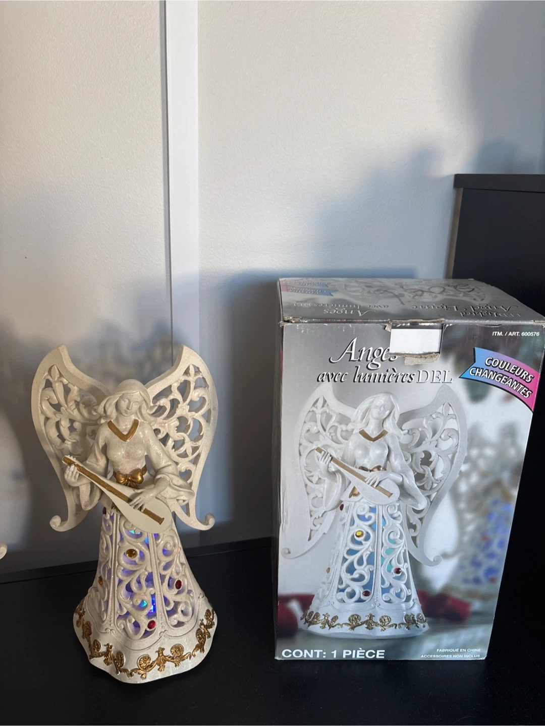 106Add a touch of serenity to your space with these lovely angel figurines! They feature delicate details and soft LED lights that change colours. Perfect for adding a warm glow to any room. Box included. Each $25