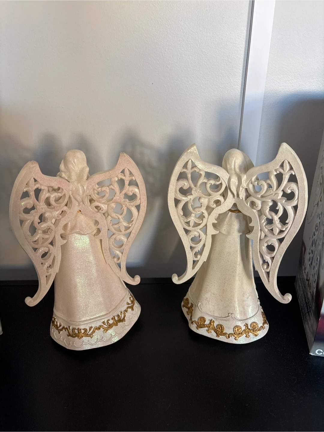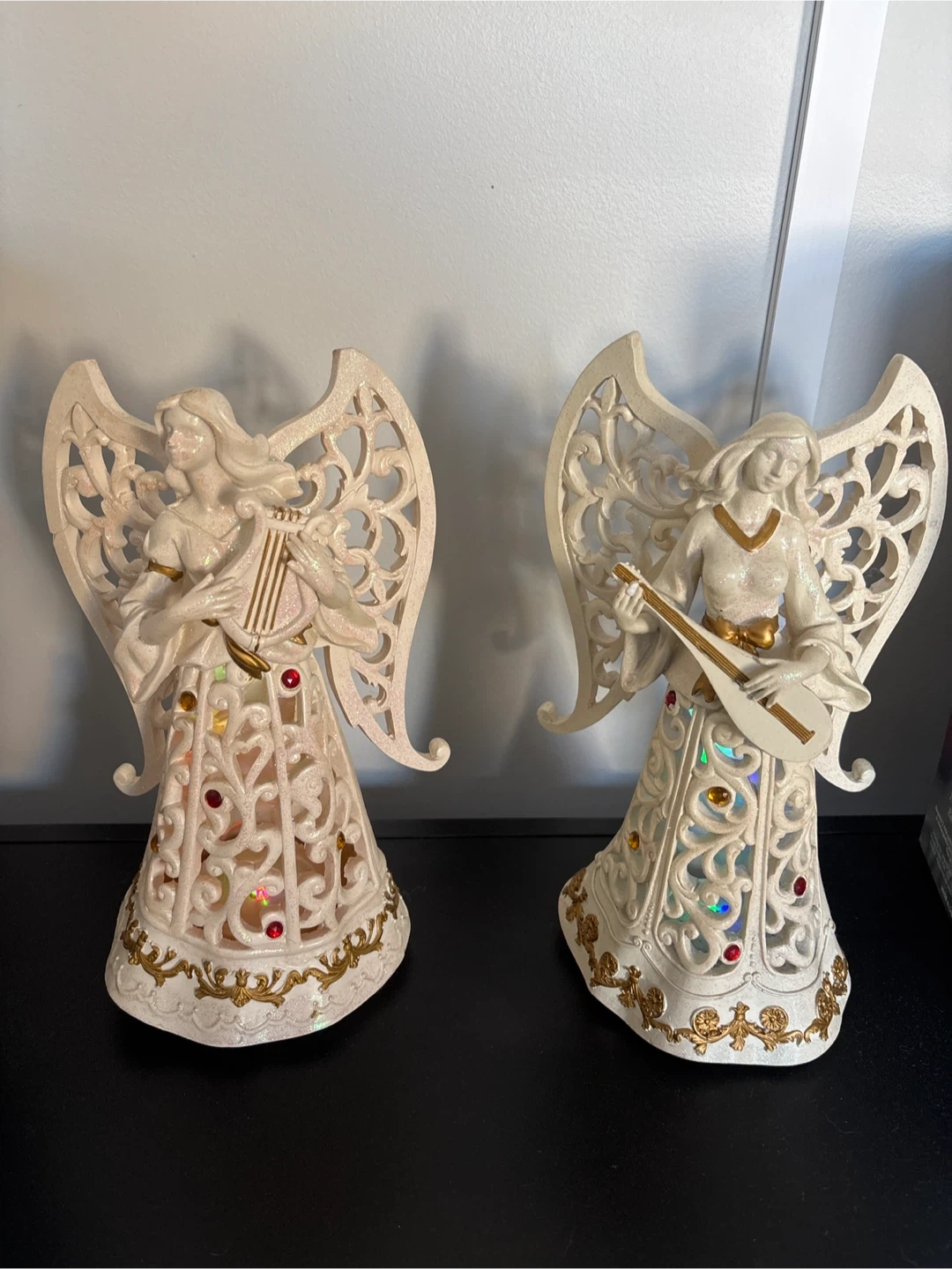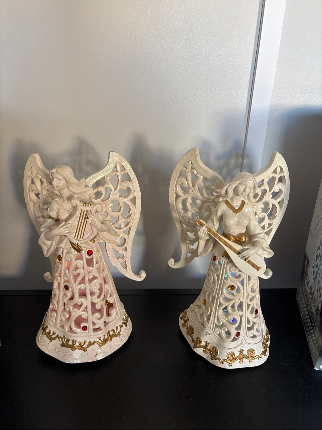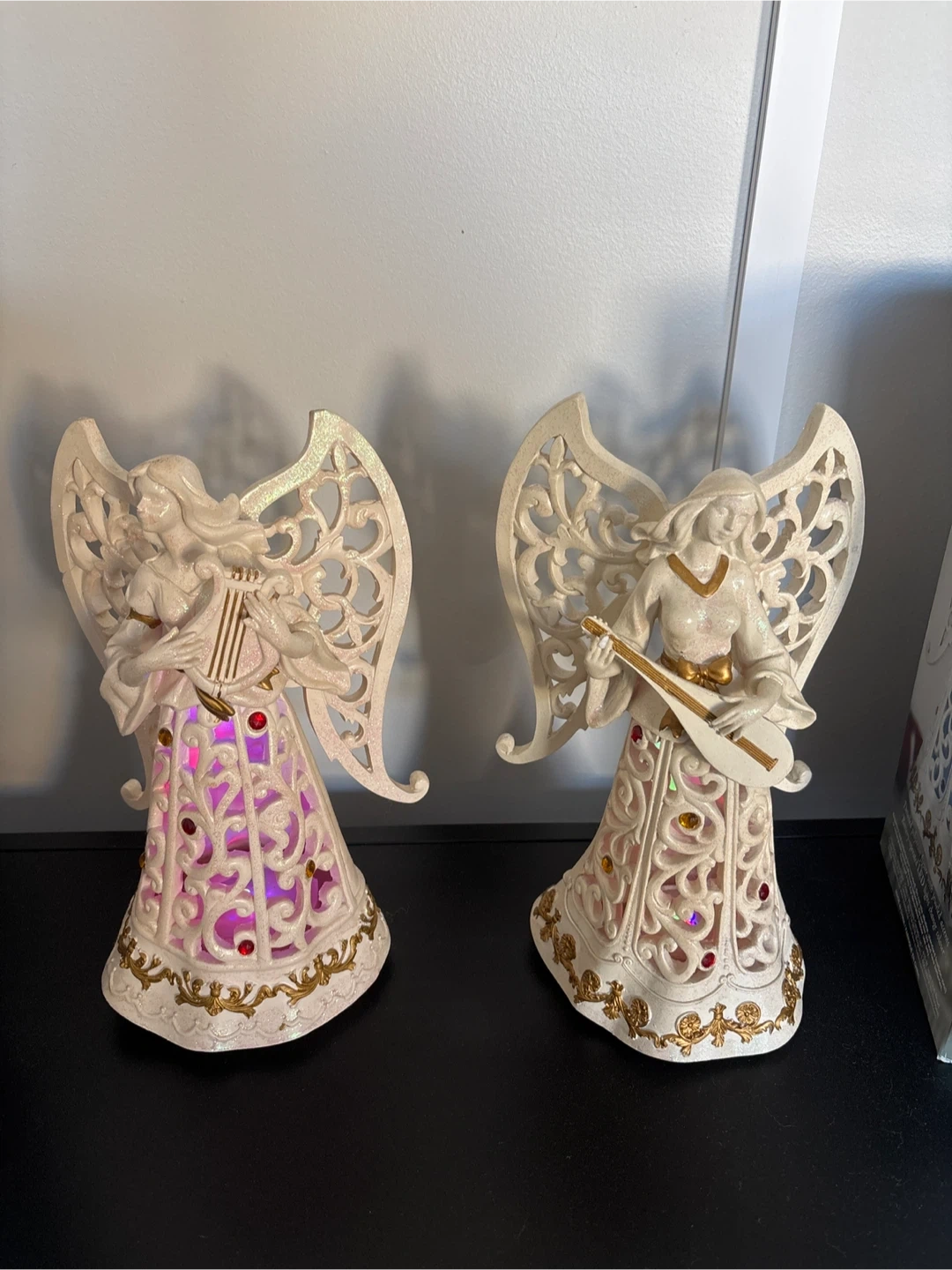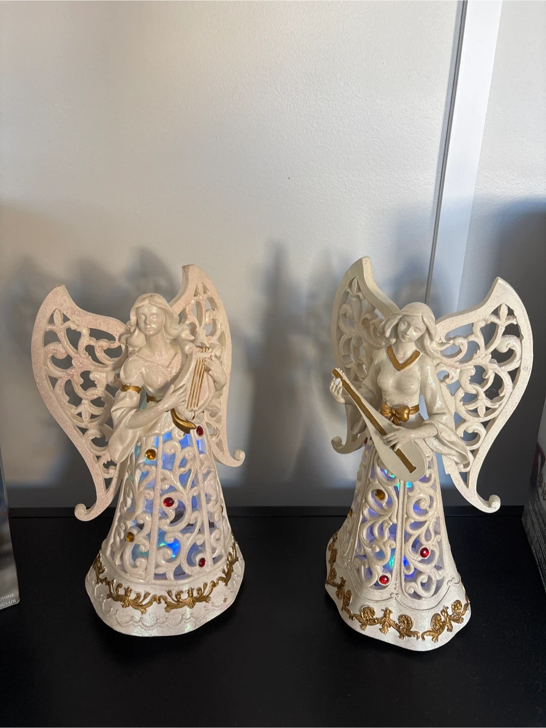 106Add a touch of serenity to your space with these lovely angel figurines! They feature delicate details and soft LED lights that change colours. Perfect for adding a warm glow to any room. Box included. Each $25