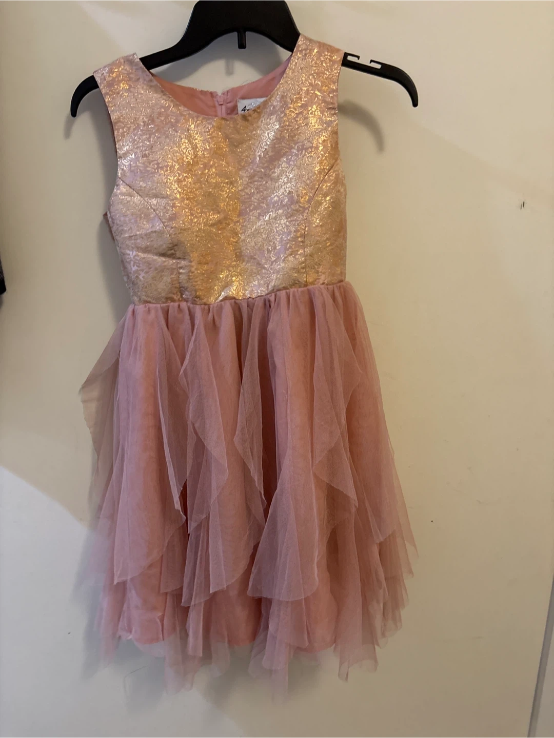 10A beautiful Angelina brand dress for girls! It features a gold bodice and a pink tulle skirt. Perfect for a special occasion or party! Size 12