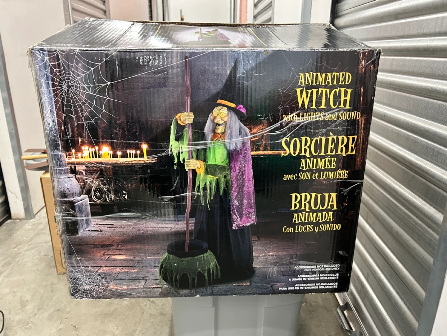 Selling an animated witch prop with lights and sound! The box indicates that it's suitable for indoor use only, and accessories are not included. Perfect for Halloween decorations!