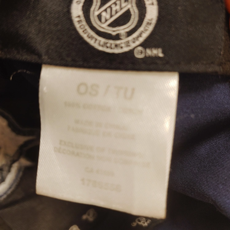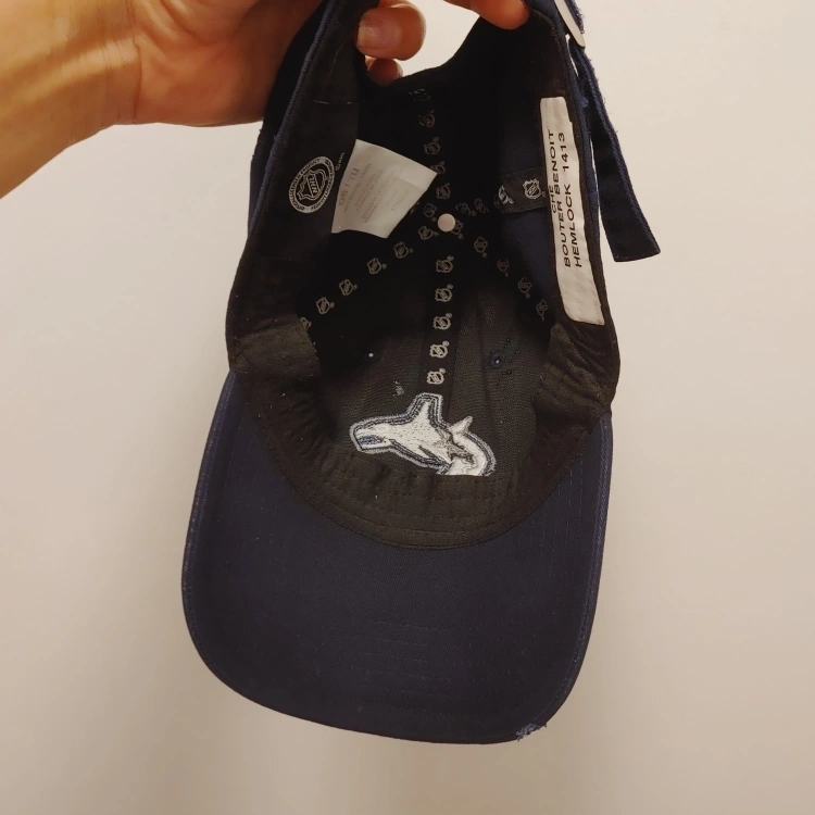 Navy blue Vancouver Canucks baseball cap. It's OS/TU size and made of 100% cotton. Features the team logo embroidered on the front.