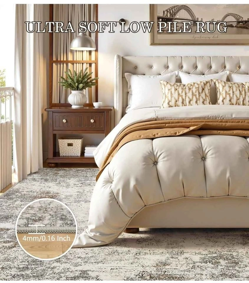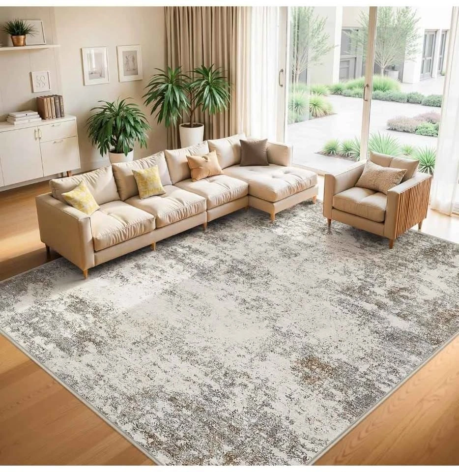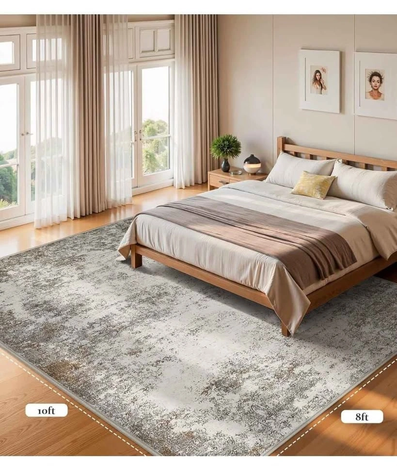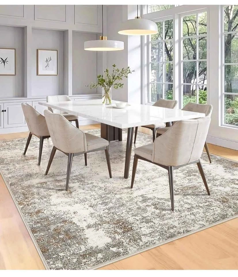 Brand new. Two pairs available. Machine washable, modern abstract large rug. Soft, anti-skid, thin carpet suitable for living room, bedroom, under dining table, nursery, farmhouse, or home office. (8'x10' Brown Grey)