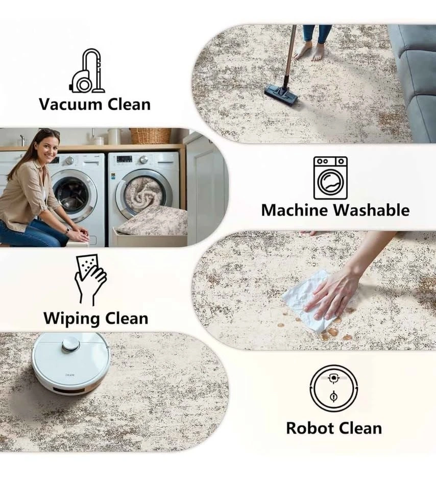 Brand new. Two pairs available. Machine washable, modern abstract large rug. Soft, anti-skid, thin carpet suitable for living room, bedroom, under dining table, nursery, farmhouse, or home office. (8'x10' Brown Grey)