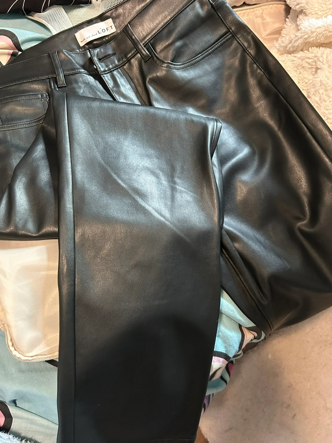 Selling a pair of black faux leather pants from LOFT! They are a size 26 (2) and in great condition. These pants are stylish and comfortable, perfect for dressing up or down. Feel free to message me with any questions or to arrange a pickup! Located near Leslie and Steeles or can meet near Bloor Yonge (Rosedale station) depending on the day!