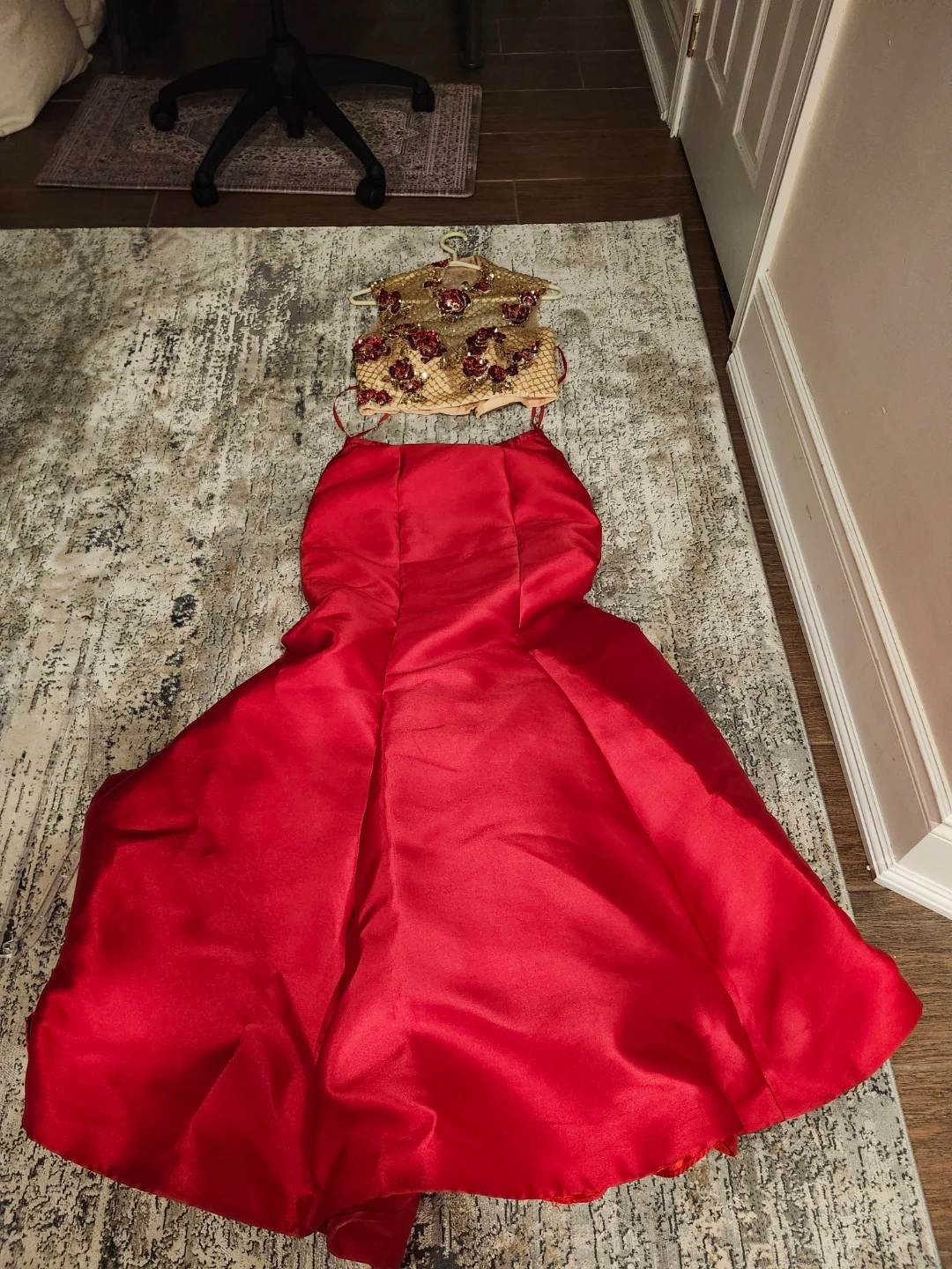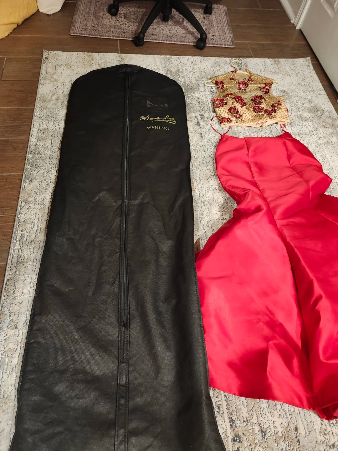 10Selling a beautiful red formal dress with a matching embellished top! The dress is in great condition and comes with a garment bag for storage. It's perfect for a special occasion. Woren for 4 hours. Dry cleaned. Purchased from Amanda Lena Boutique in Woodbridge. Perfect condition smoke free pet free home. Paid $1,100 plus tax and alterations. Make me an offer.