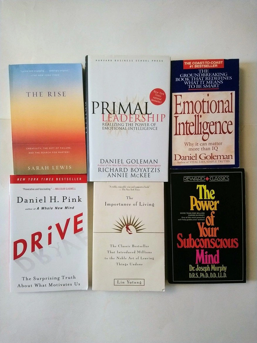 354Location: Yonge and College /downtown Toronto $7 each except The Power of Your Subconscious Mind. Cash only; prices are firm. - The Rise: Creativity, The Gift of Failure, and the Search for Mastery - Sarah Lewis - Primal Leadership: Realizing the Power of Emotional Intelligence - Daniel Goleman & Richard Boyatzis - Emotional Intelligence: Why It Can Matter More than IQ - Daniel Goleman - Drive: The Surprising Truth About What Motivates Us - Daniel H. Pink - The Importance of Living - Lin Yutang - The Power of Your Subconscious Mind - Dr. Joseph Murphy - $9 Feel free to check out my other book posts as well!