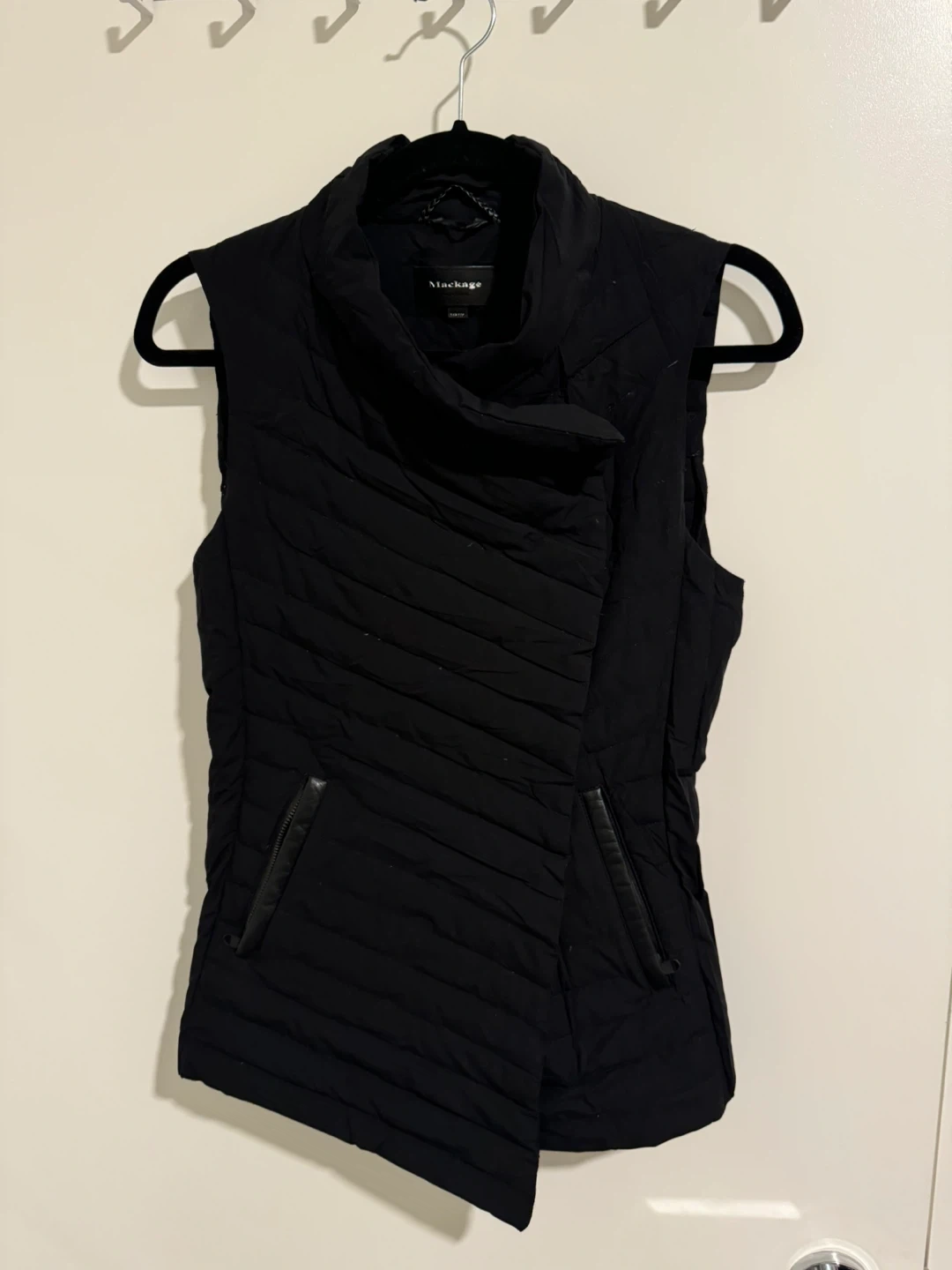 Selling a stylish Mackage black padded vest in size small! It's in great condition and perfect for layering during those cooler days. The unique design and quality material make it a standout piece!