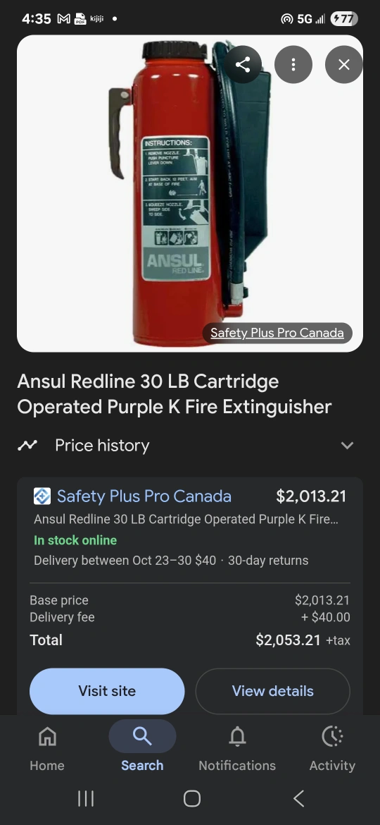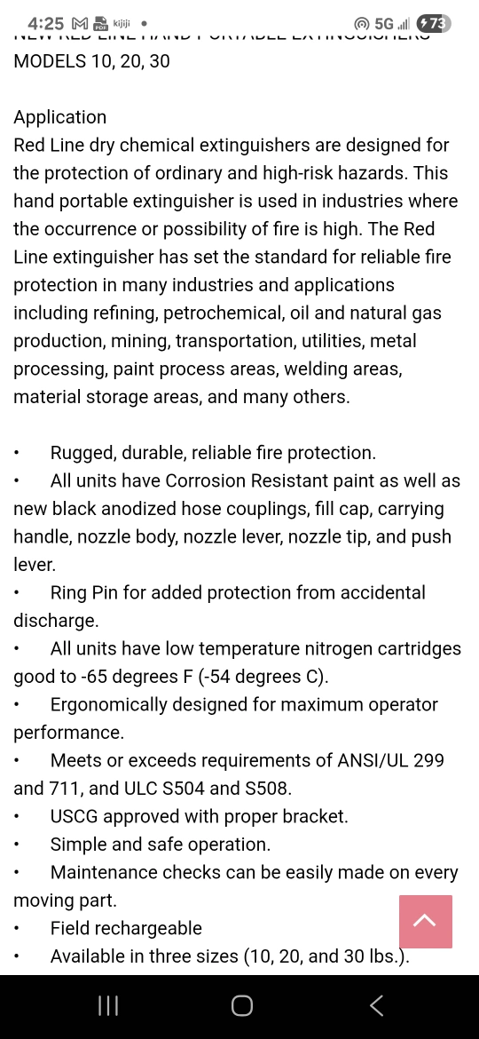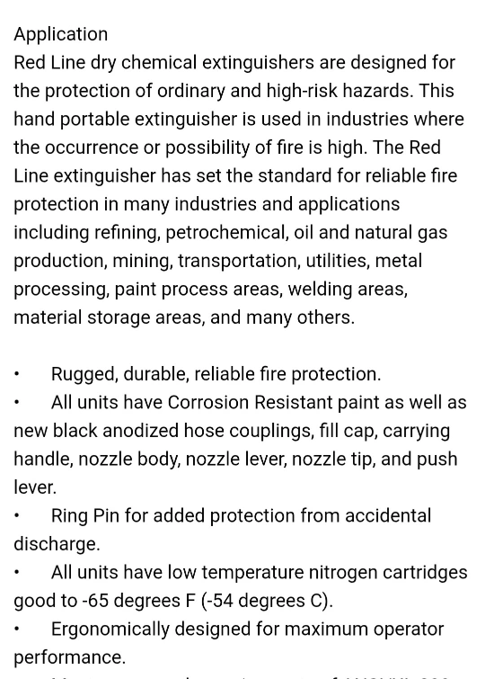 Selling Ansul Redline 30 LB Cartridge Operated "Purple K " dry chemical Fire Extinguishers These fire extinguishers are designed for the protection of ordinary and high-risk hazards. They are ugged, durable, and provide the best overall fire protection of any extinguishers on the market. The units have corrosion-resistant paint and black anodized hose couplings. the only choice for class B fires. these extinguishers were last certified in 2023. the paint is little sun faded on them but they are in perfect working condition and have never been used. The "Purple k" chemical is the finest dry chemical upgrade available. designed for oilfield applications, it will put out just about anything from gasoline to your neighbors illegal meth lab. lol. these extinguishers retail for over $2000.00 and were salvaged from a orphan gas compressor station reclamation project. multiple extinguisher discounts available. I have about two dozen units for sale.