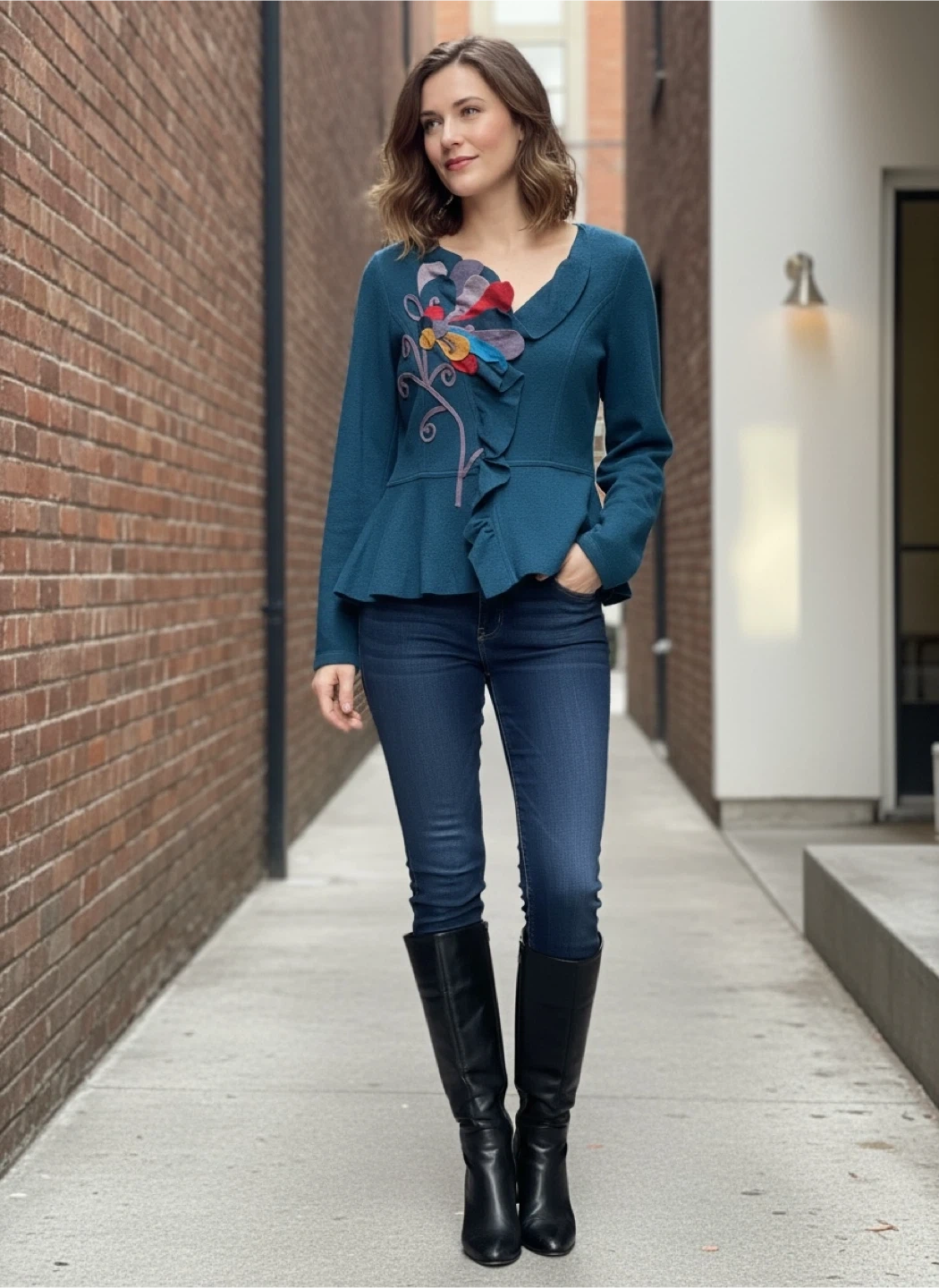 15This is a beautiful Anthropologie Sleeping on Snow jacket in a lovely teal colour. It features a unique floral design and can be worn as a top or jacket. 100% wool. It's in great condition and ready for a new home!4