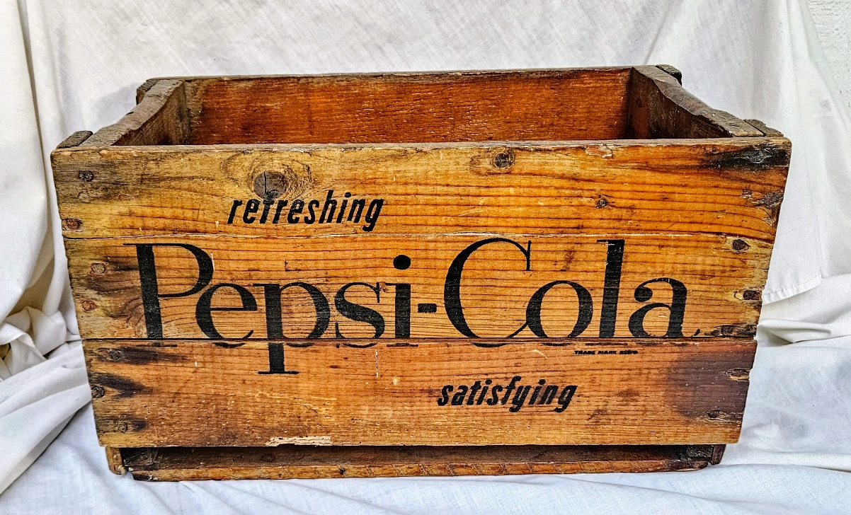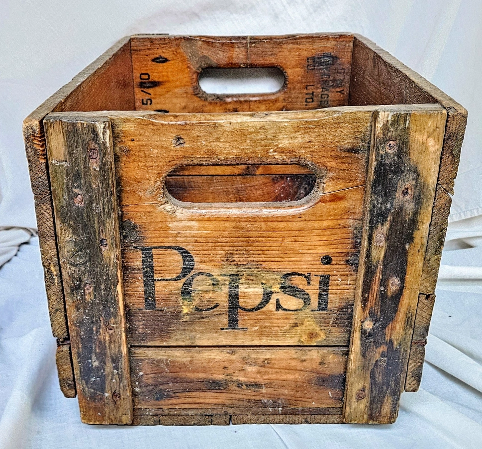 Antique Pepsi-Cola Bottle Wooden Crate Circa 1960’s This collectible antique Pepsi-Cola bottle wooden crate is in excellent cond. The crate and the wooden panels are all intact. This collectible antique Pepsi-Cola bottle wooden crate 65 years old and if taken case of properly, it’ll be around for another 65 years. The measures are 18-1/4" Long X 11-1/2" wide X 10" Tall (OD) Inside is 10-3/8" X 15-1/2" (ID)