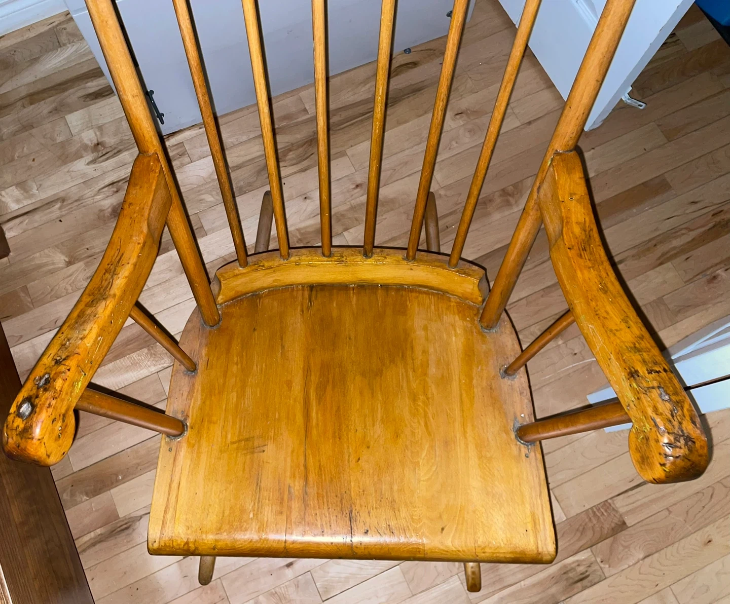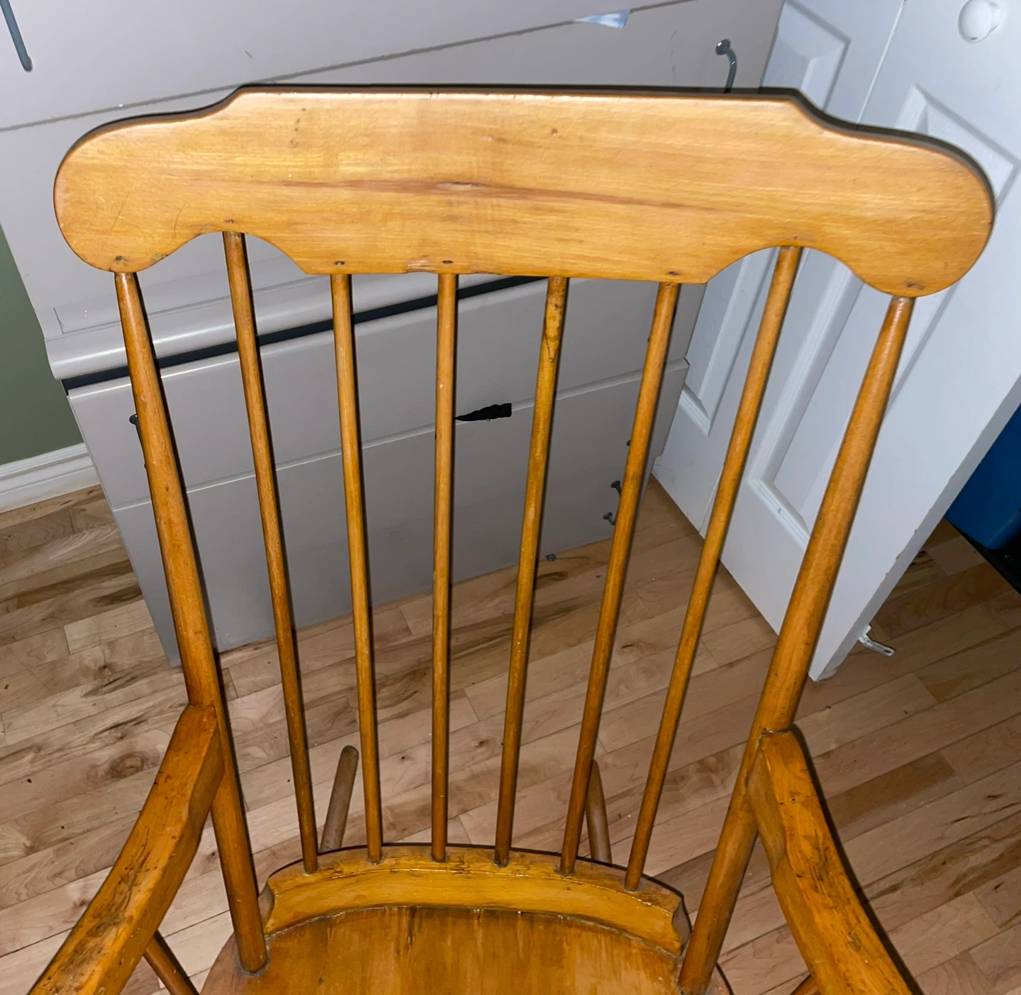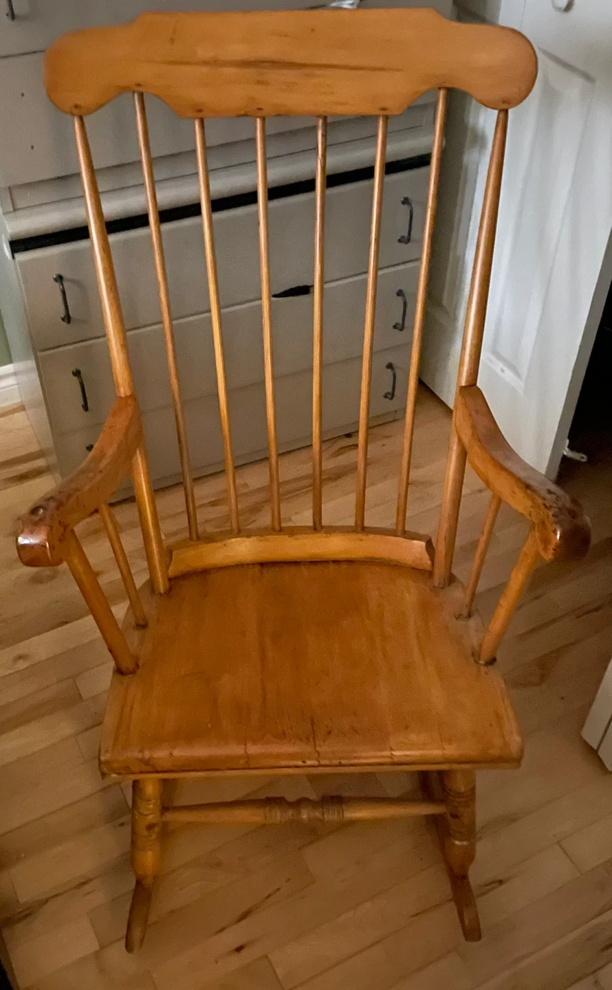 Selling an antique wooden rocking chair. It has a classic design and would be a great addition to any room. It's in good condition and ready for a new home , great patina . Rocks smoothly. Downsizing, no room .