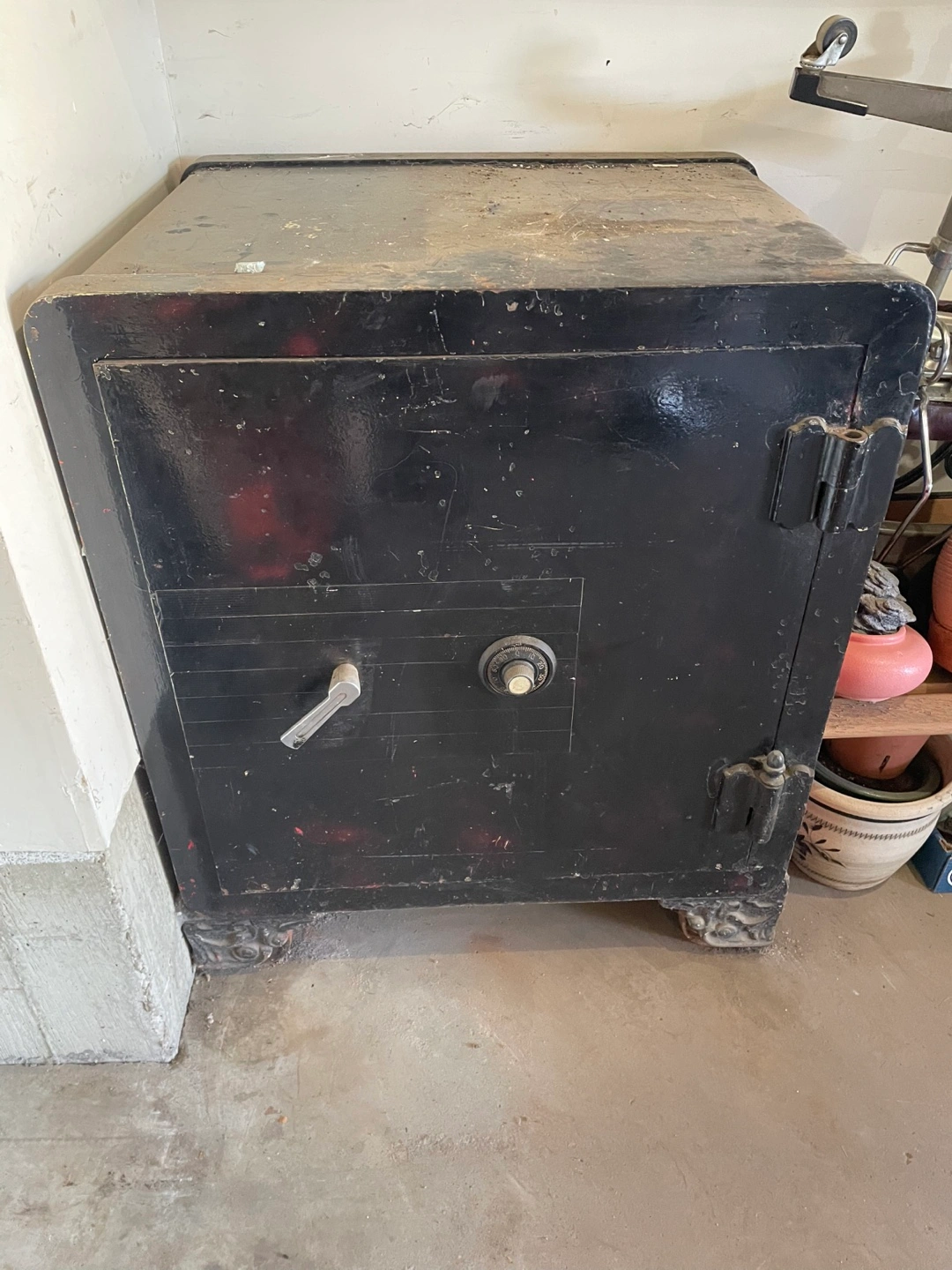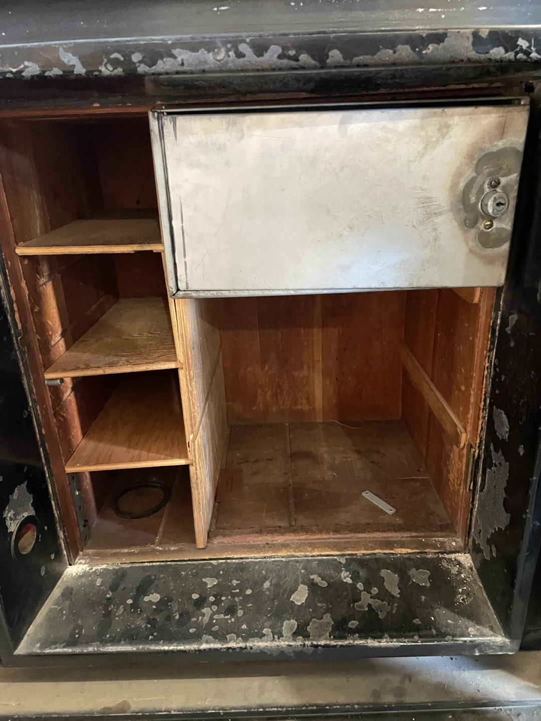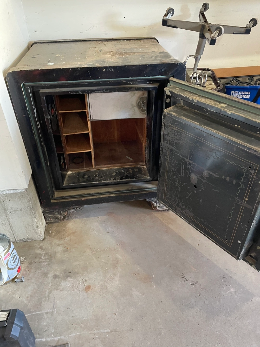Selling an antique safe. It's quite heavy and shows signs of wear, but it's very sturdy. The interior has shelving on one side and an open compartment on the other. Perfect for storing valuables or adding a vintage touch to your space it is very heavy weight is 2000lb 33x28x 26 cash only please no e-transfers thank you