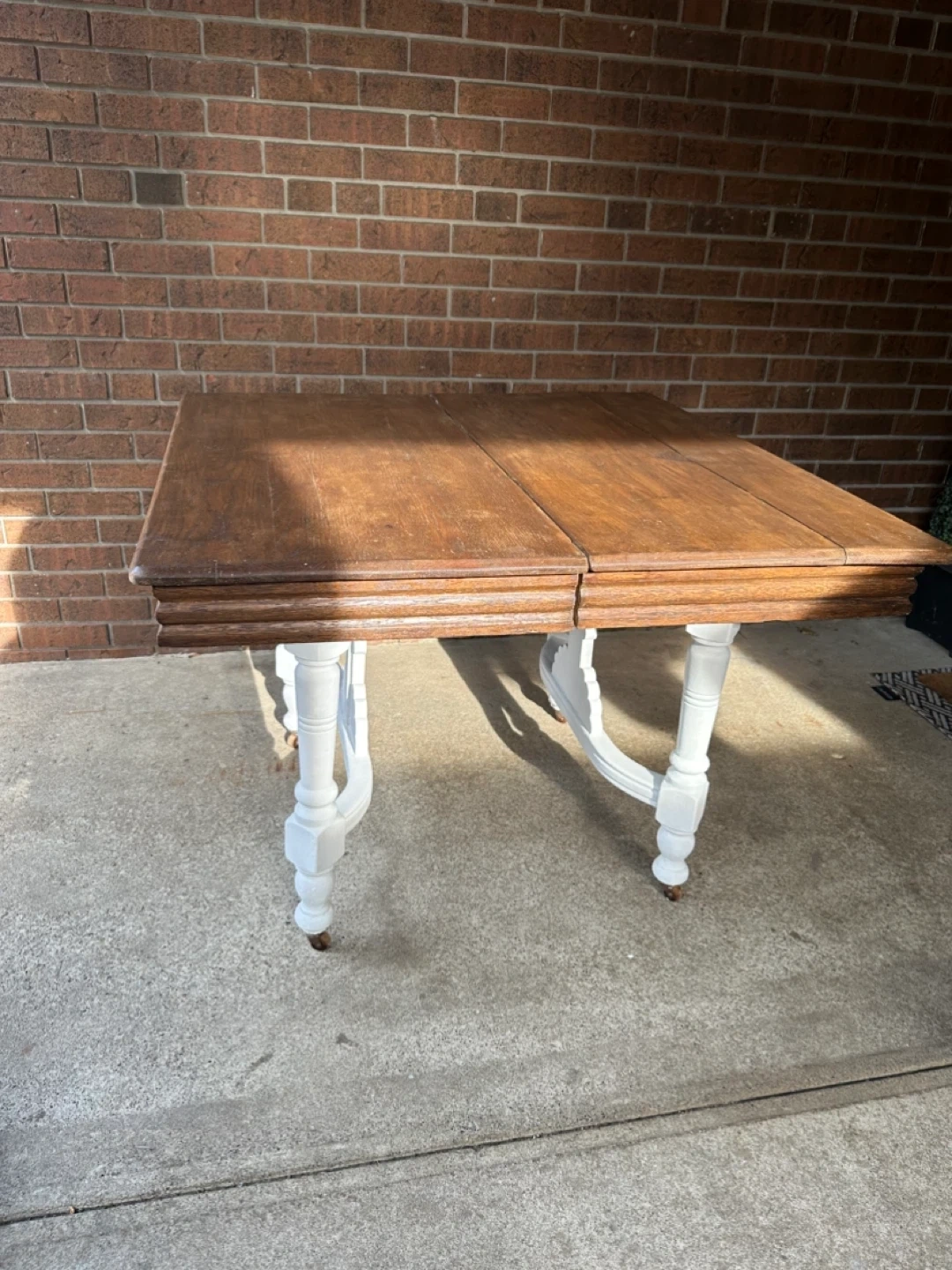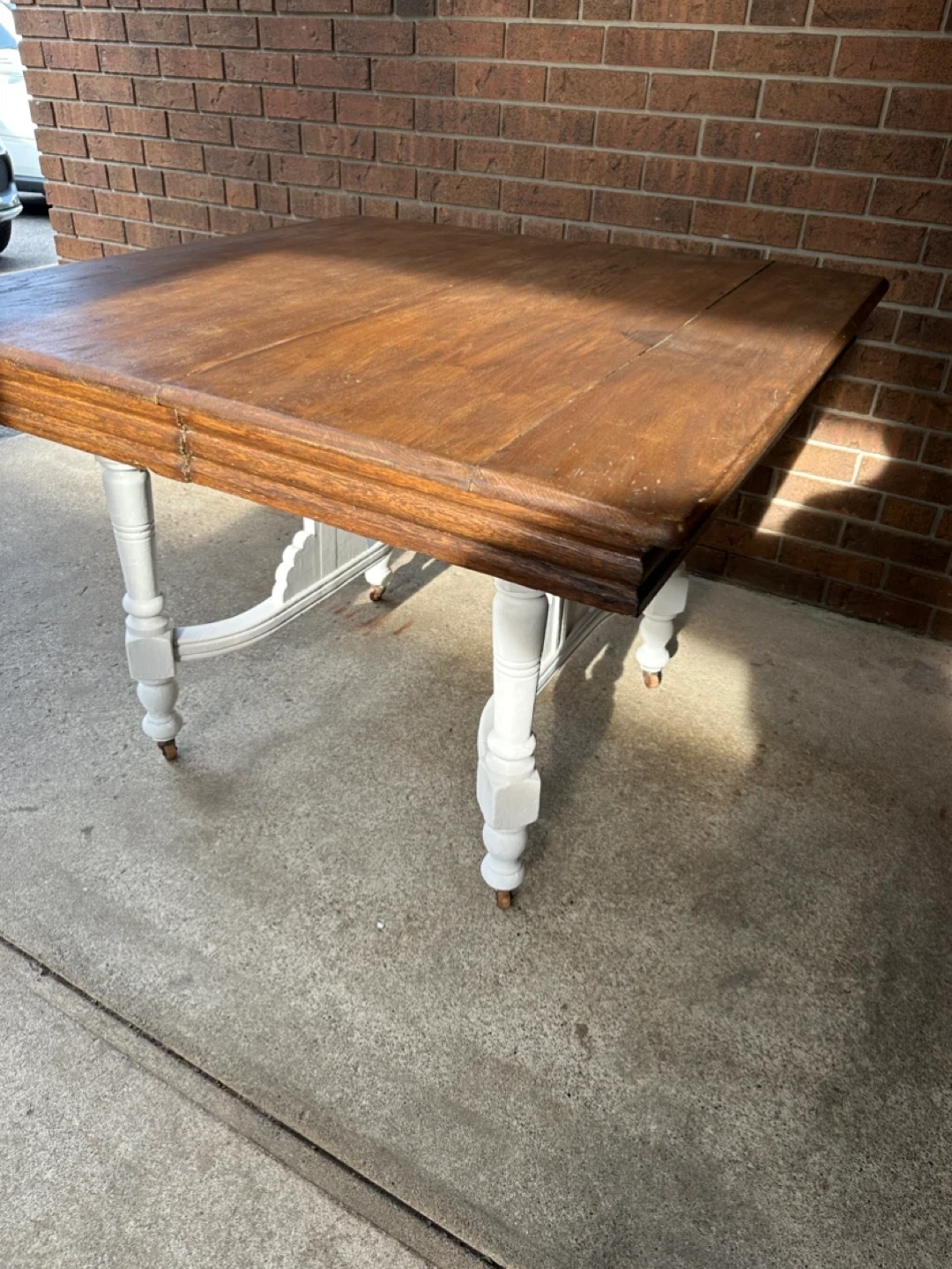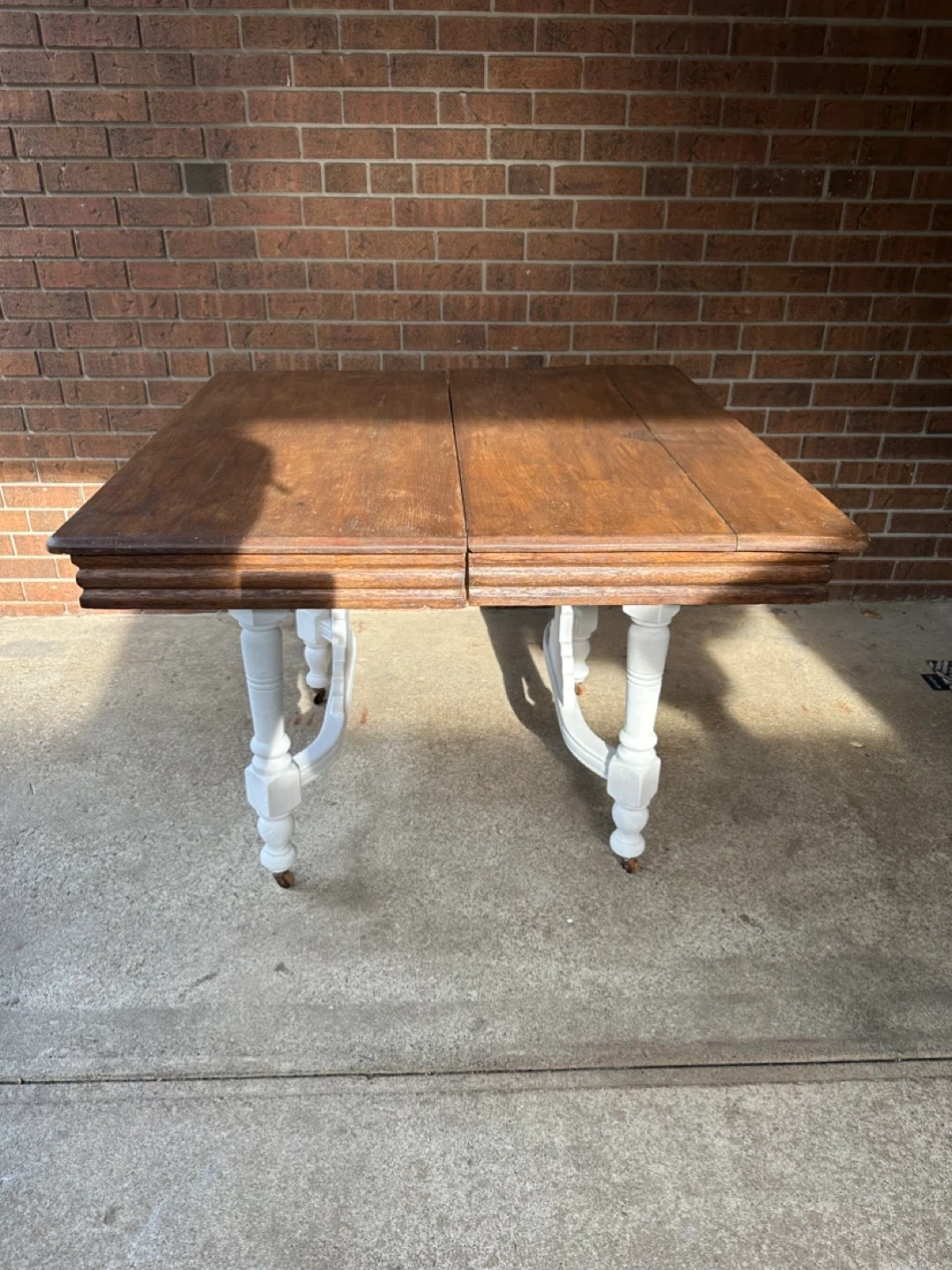 36Antique solid wood dining table refurbished. Cute piece that has been in our family for generations and is ready for a new home. Extends, but is missing leaf. Use as is or custom fit another leaf. It’s in good/fair condition. Size: 3 feet 5.5 inches x 3 feet 5.5 inches Height is 2.5 feet Any other questions just ask. Can be delivered, depending on location with a fee