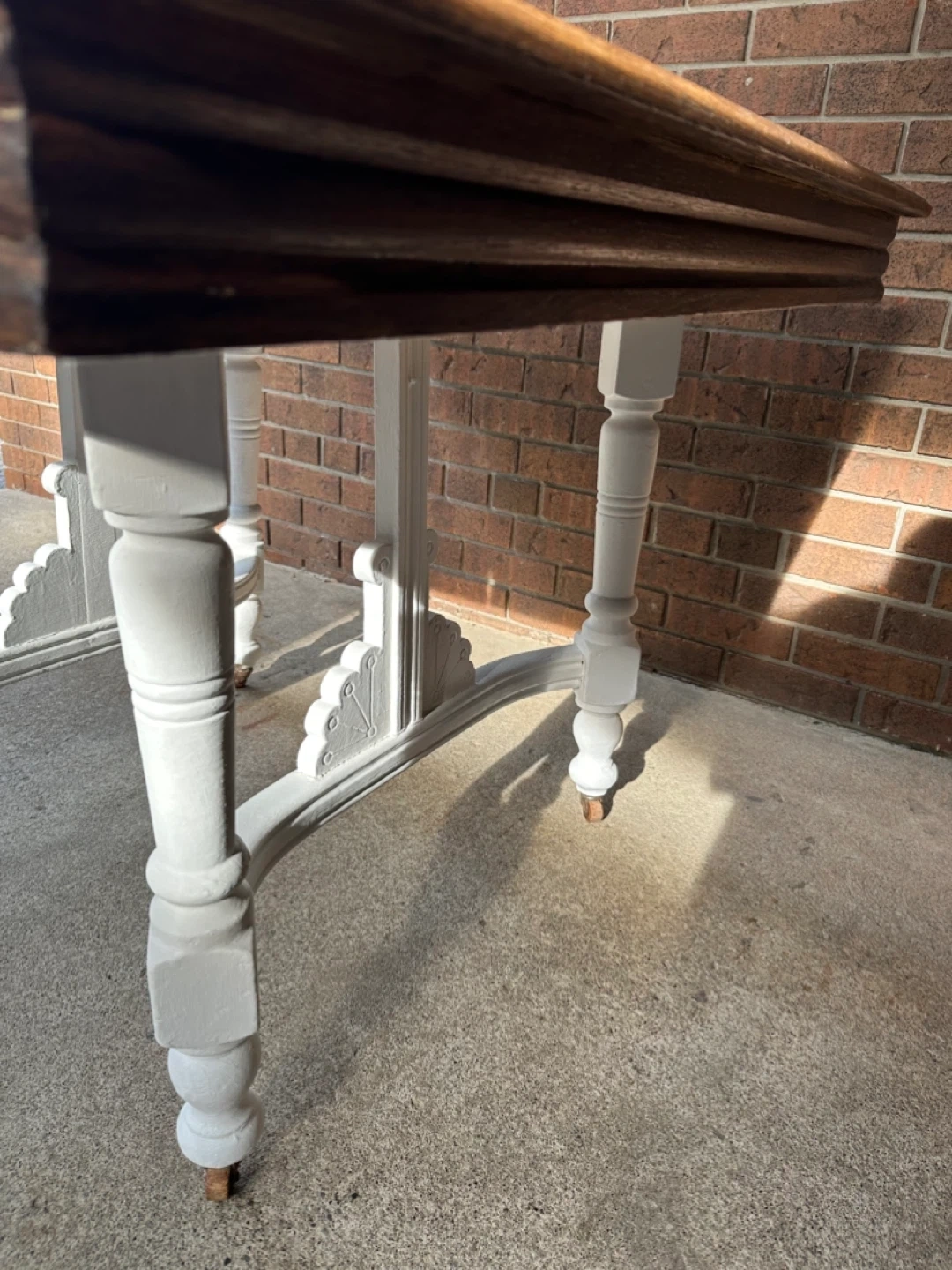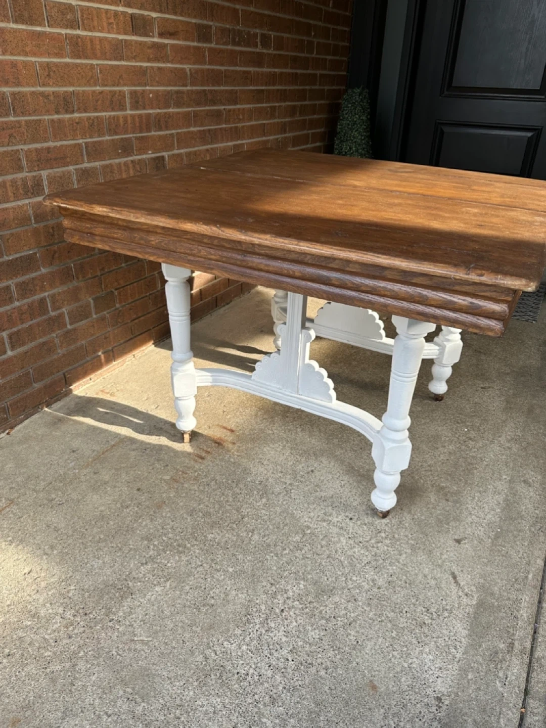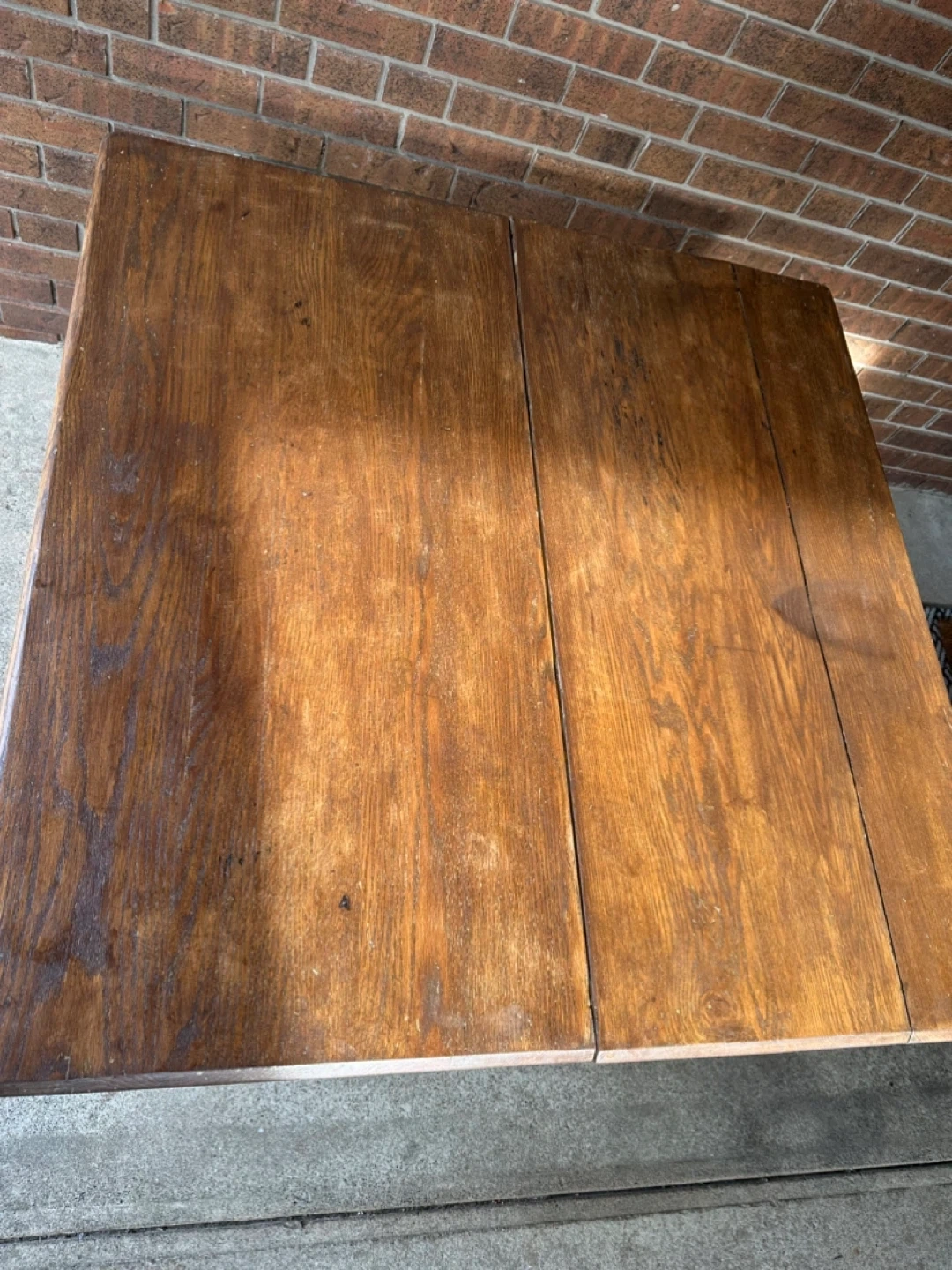 36Antique solid wood dining table refurbished. Cute piece that has been in our family for generations and is ready for a new home. Extends, but is missing leaf. Use as is or custom fit another leaf. It’s in good/fair condition. Size: 3 feet 5.5 inches x 3 feet 5.5 inches Height is 2.5 feet Any other questions just ask. Can be delivered, depending on location with a fee