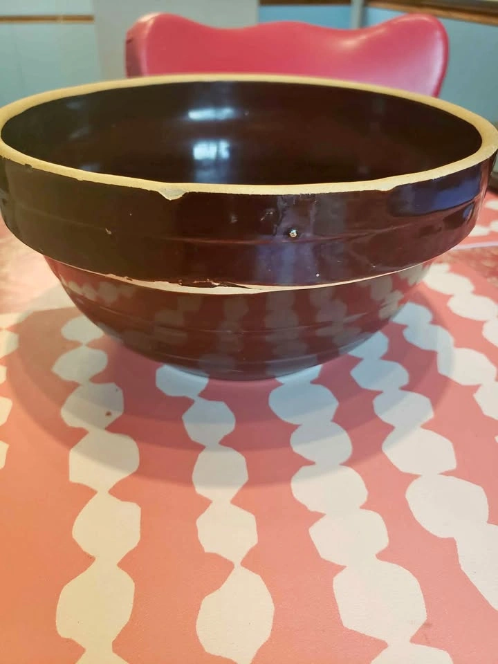25This vintage McCoy pottery bowl is a nice addition to any collection. Its unique beehive pattern and glazed burgundy brown finish make it a beautiful piece of vintage pottery. The bowl is handmade with stoneware material and is 9 inches in diameter and 4.5 inches in height. The McCoy bowl is an original piece with a backstamp of USA 9 IN on the bottom indicating an early 20th century production. This pottery piece has some normal wear and one very minimal chip. No cracks. Pick up in Upper Lonsdale North Vancouver. Cross posted with Marketplace
