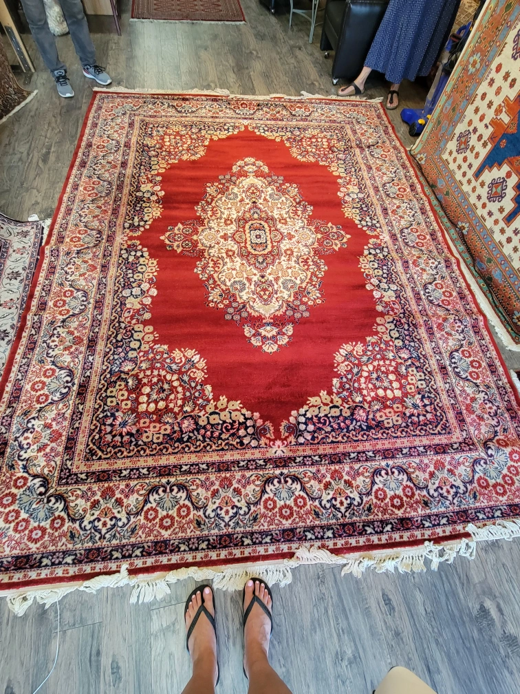 8x11 ft antique oriental rug - excellent condition, and has been professionally cleaned and appraised. 100% wool pile with original tag (see photos) and was in a smoke-free/pet-free home, and no high-traffic marks on the carpet. Fringe is in excellent condition, too. Has been appraised at $1,500 (appraisal certificate can be provided with purchase) Asking $500 - open to reasonable negotiation.