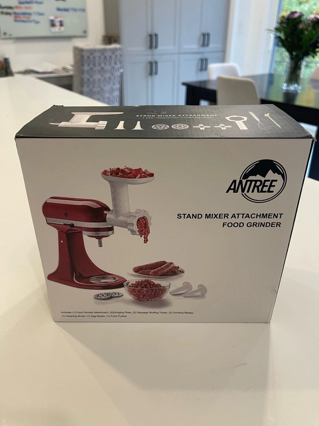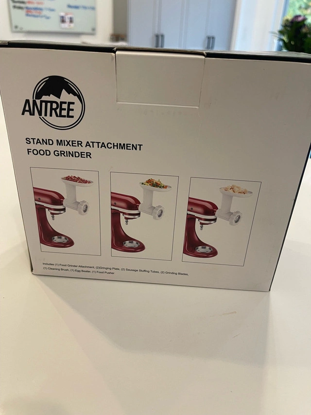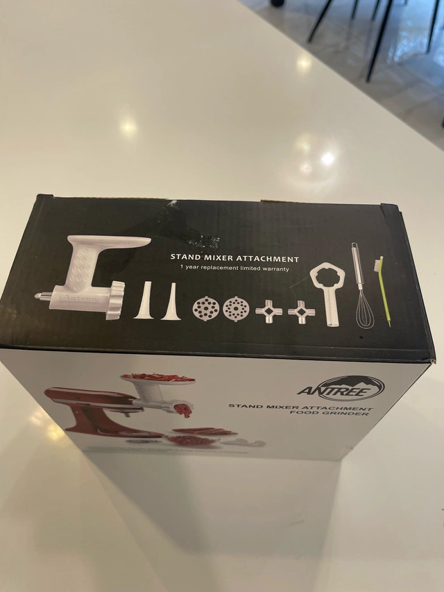 I'm offering a brand-new, in-box Antree stand mixer food grinder attachment, perfect for expanding the functionality of your kitchen. This attachment includes a food grinder, grinding plates, sausage stuffing tubes, grinding blades, a cleaning brush, an egg beater, and a food pusher. $20 OBO Here are some key highlights: * Complete set with multiple attachments * Durable construction for long-lasting use * Easy to install and use * Enhances your mixer's versatility