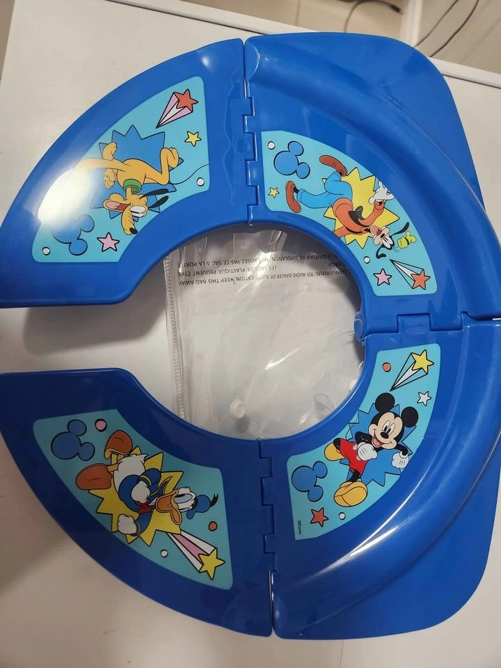 Cute foldable potty training seat featuring Disney characters Mickey Mouse, Donald Duck, Goofy, and Pluto. Blue color. Great for little ones learning to use the toilet. Easy to take on trips too. Price: $10 CASH ONLY. Meet Location: Pickering.