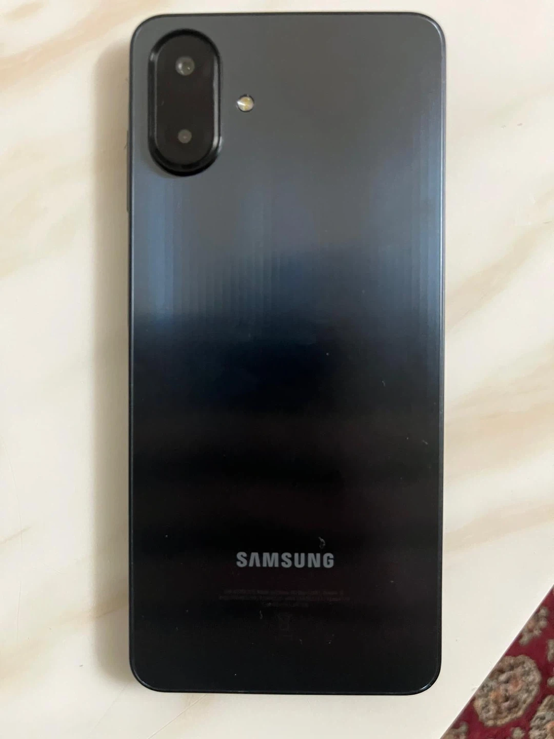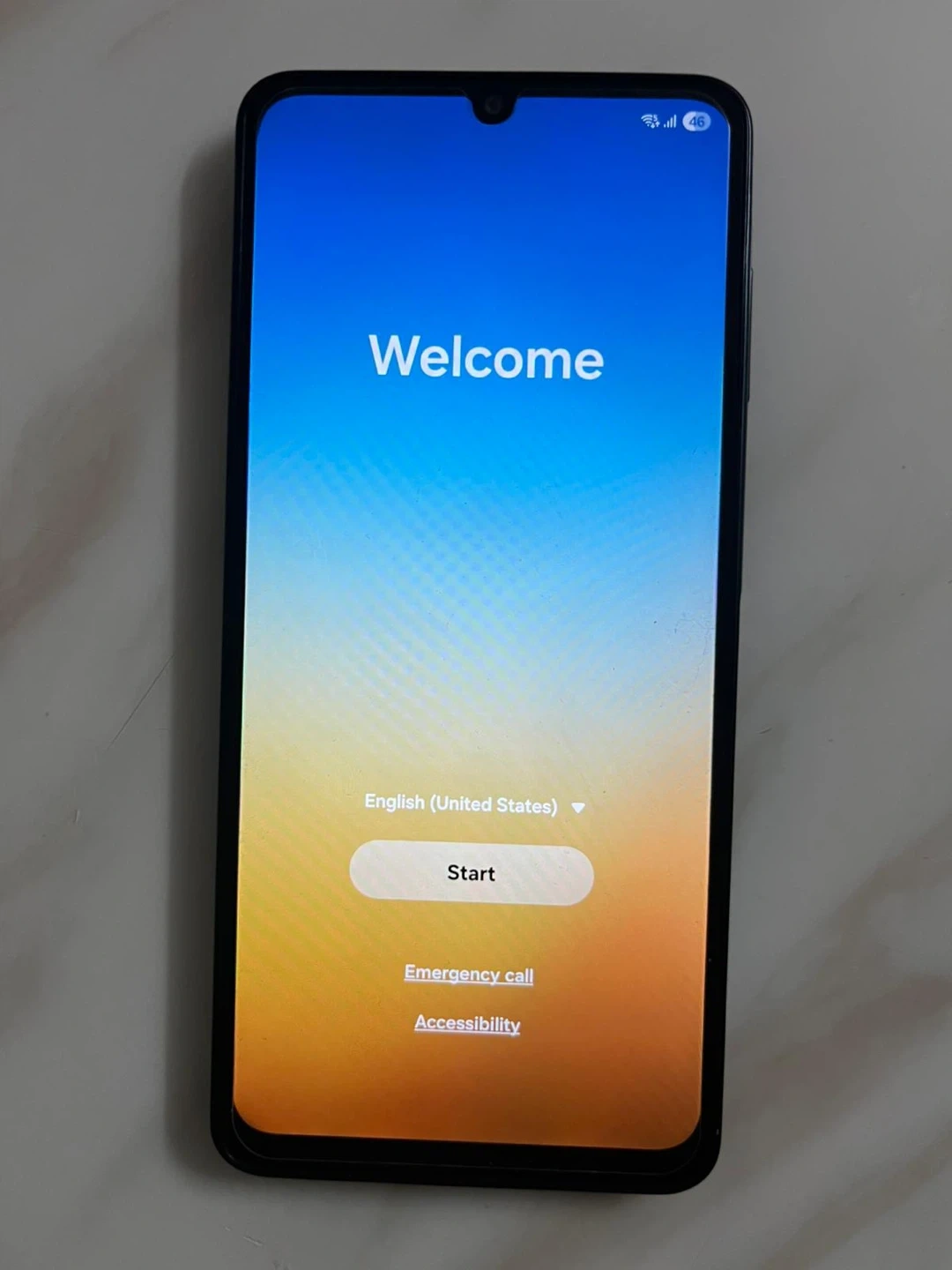 This is a black Samsung smartphone. It's ready for setup with a welcome screen. A great device for everyday use! Brand new not used