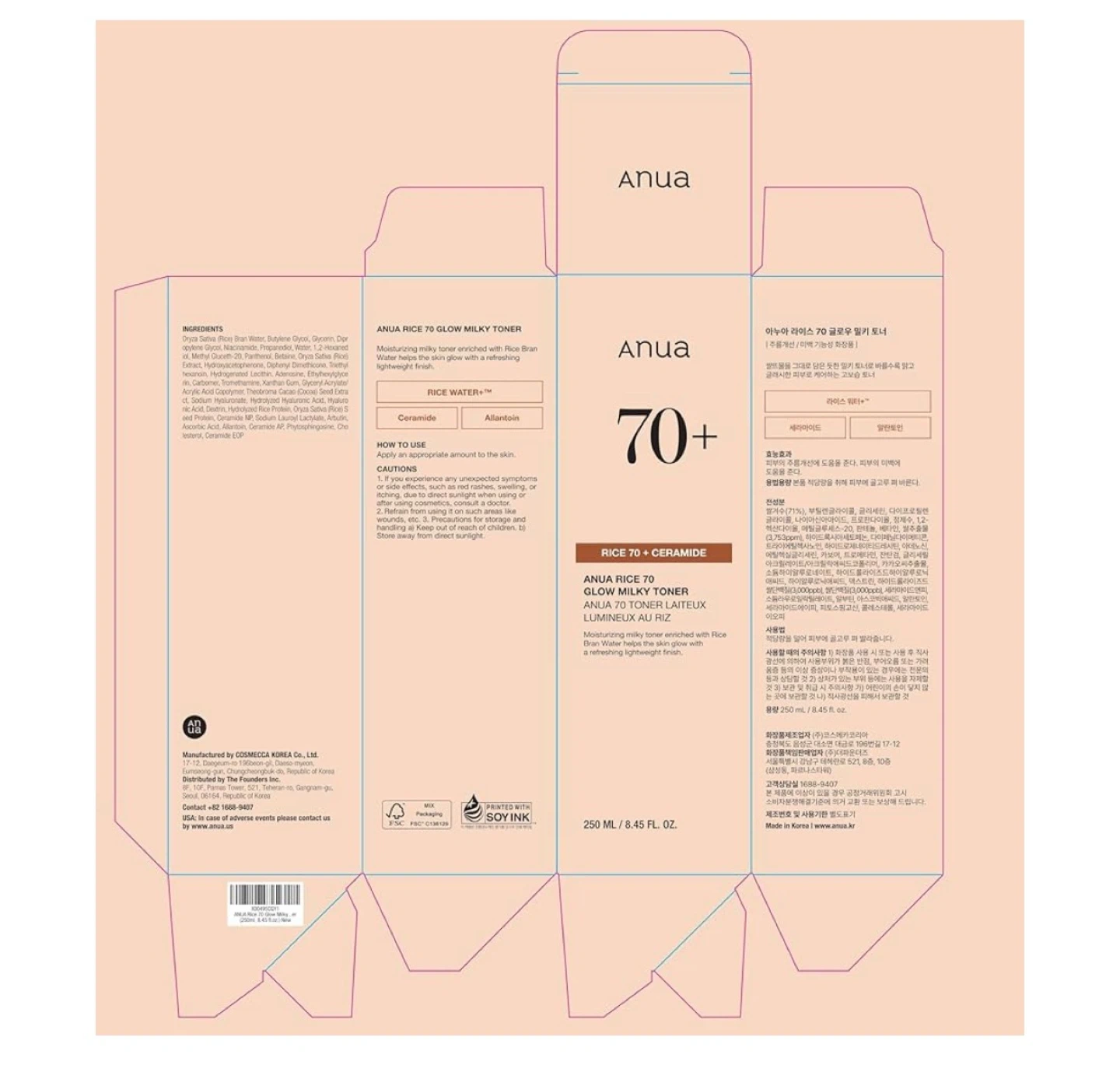 Anua 70+ Rice Glow Milky Toner (250ml)