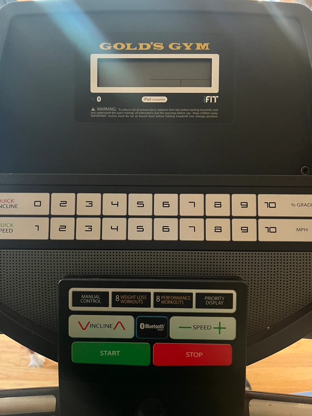 Gold's Gym treadmill with multiple workout programs and speed/incline controls. Great condition!