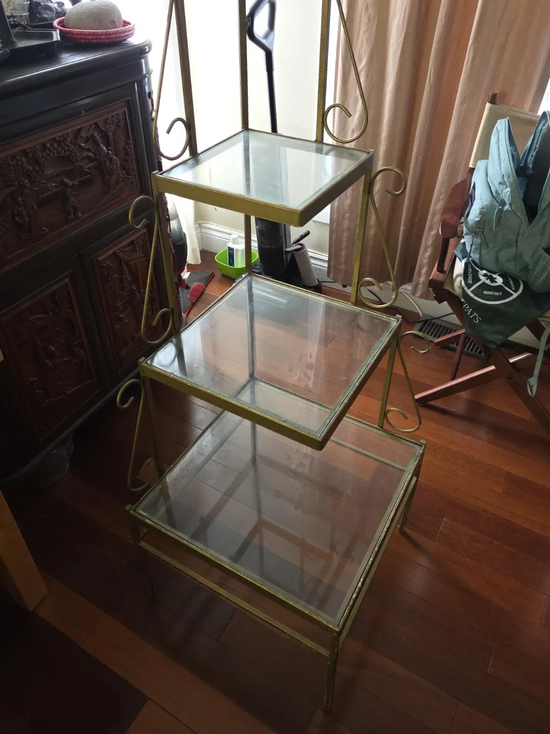 3-Tier Gold Metal and Glass Display Shelf