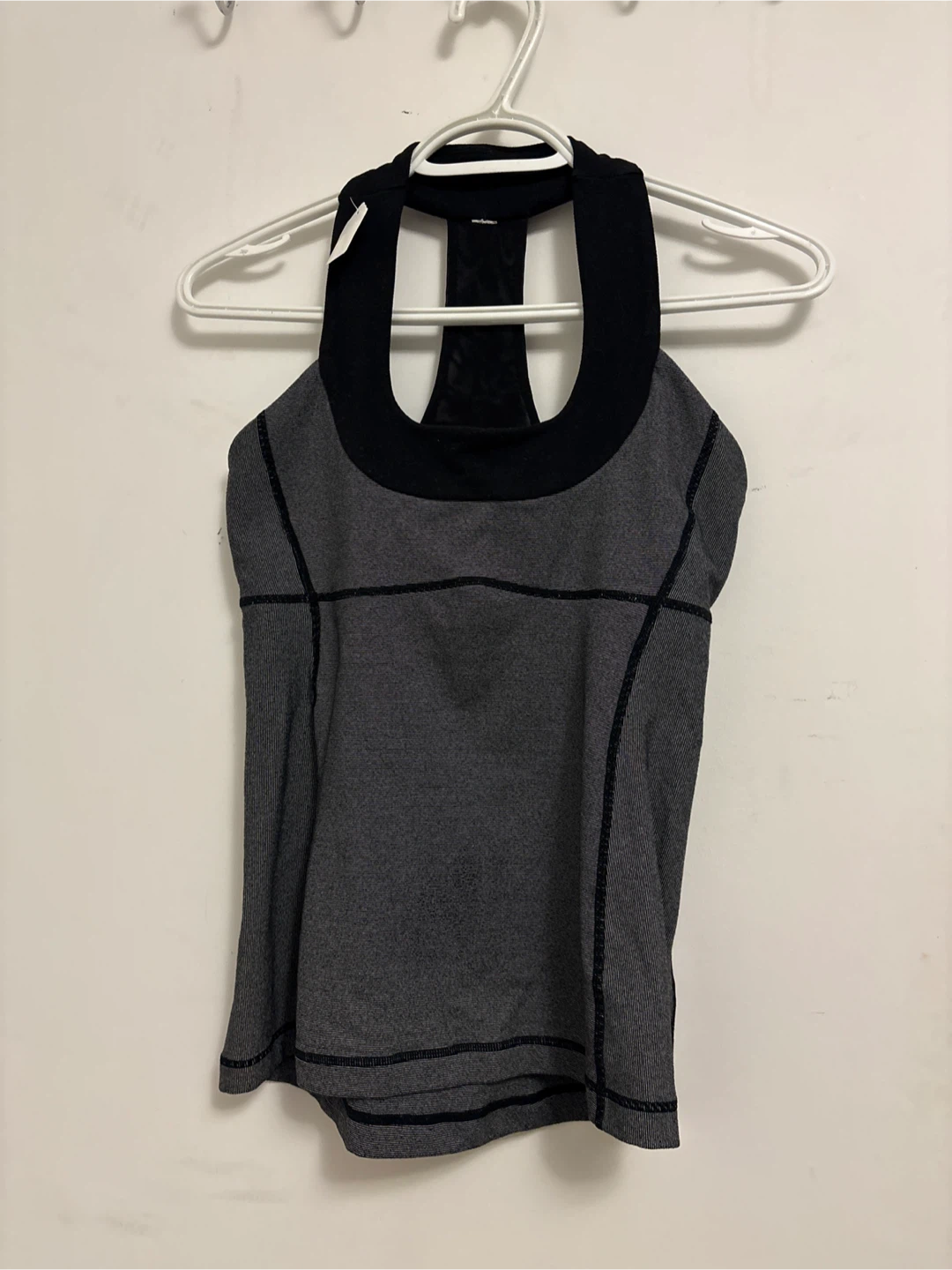 Selling a Lululemon tank top in size 6! It's a stylish and comfortable top, perfect for workouts or casual wear. The grey and black colour combination is versatile and easy to match with other activewear. Grab it while you can!