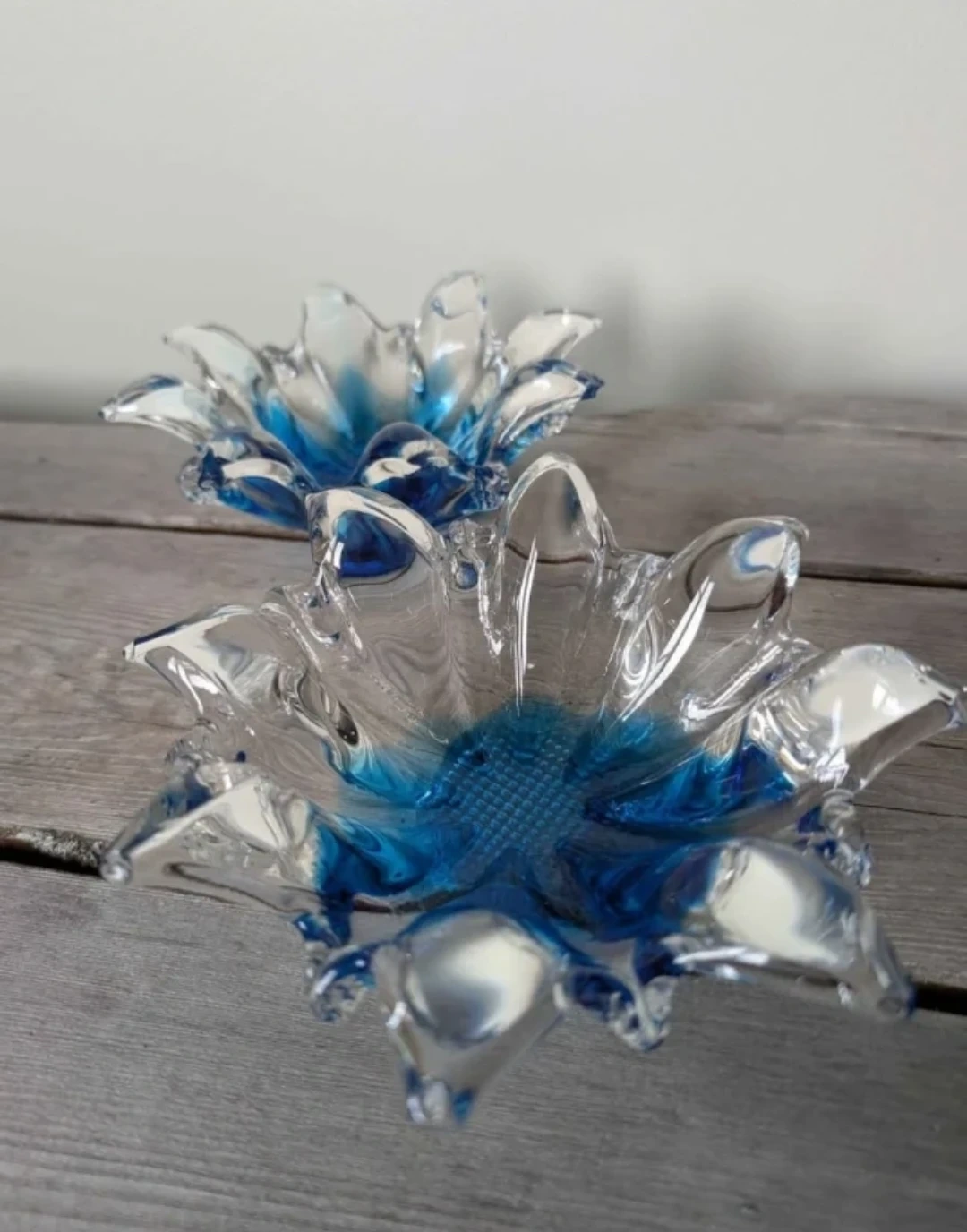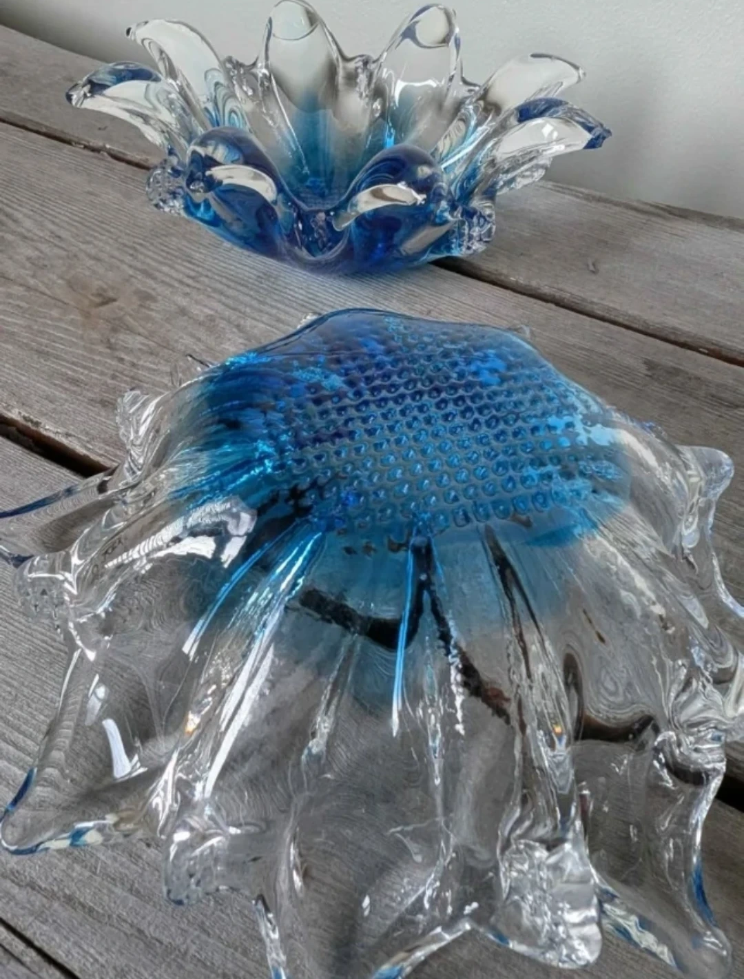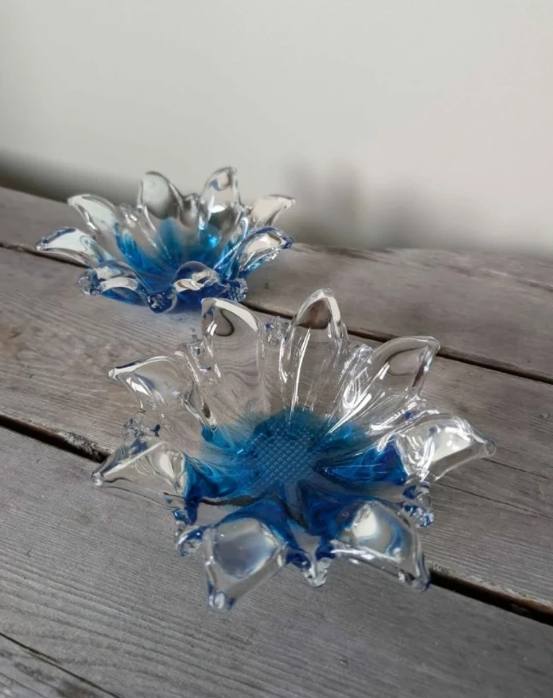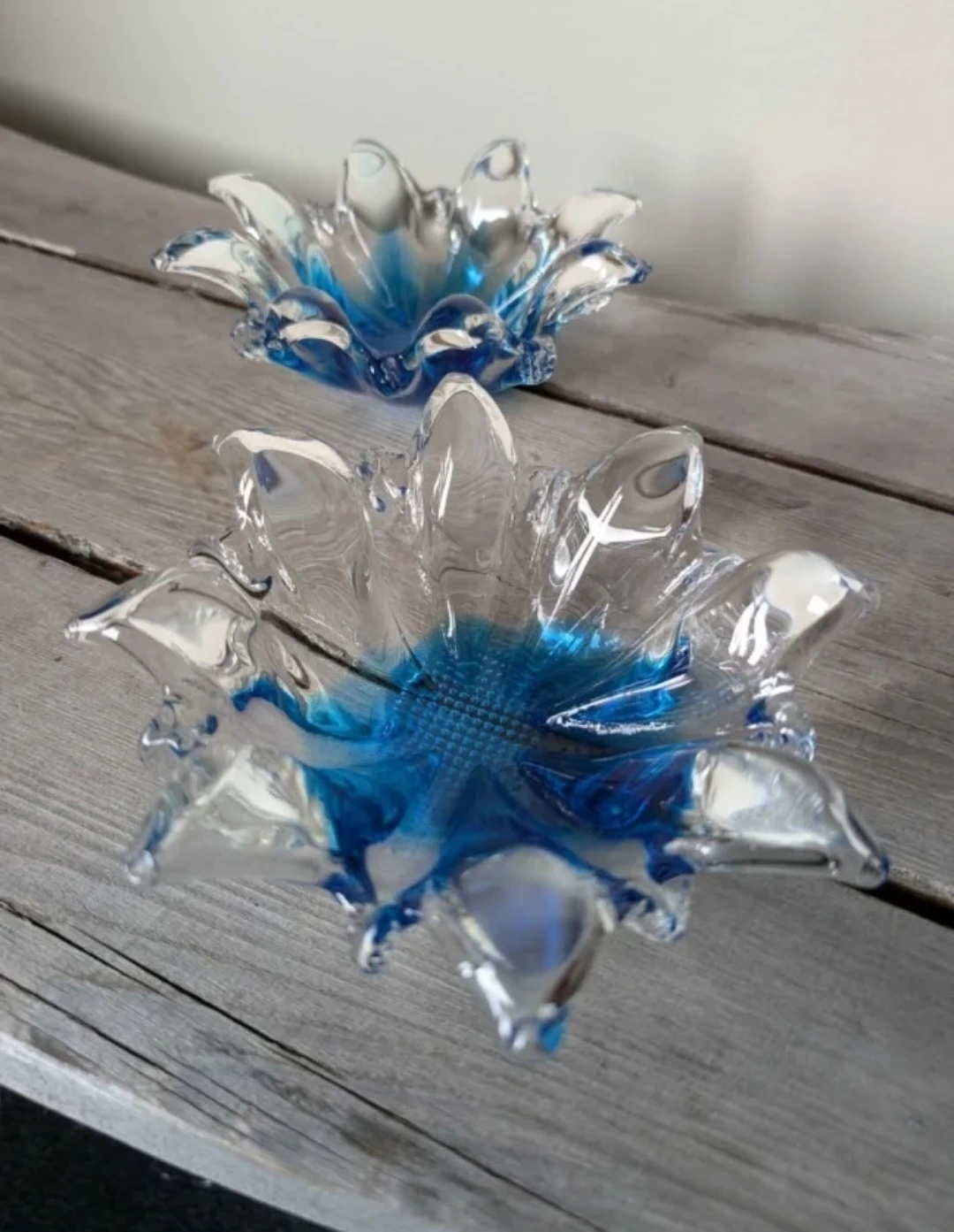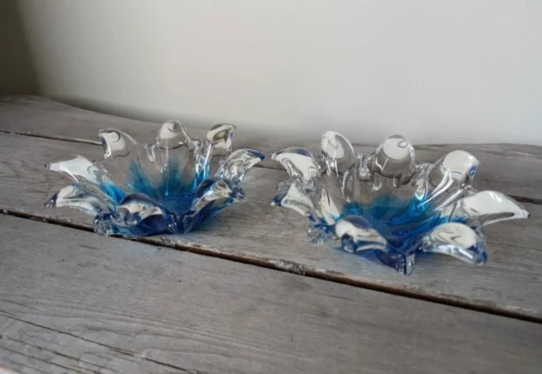 Set of 2 Blue and Clear Art Glass Dishes πŸ₯•