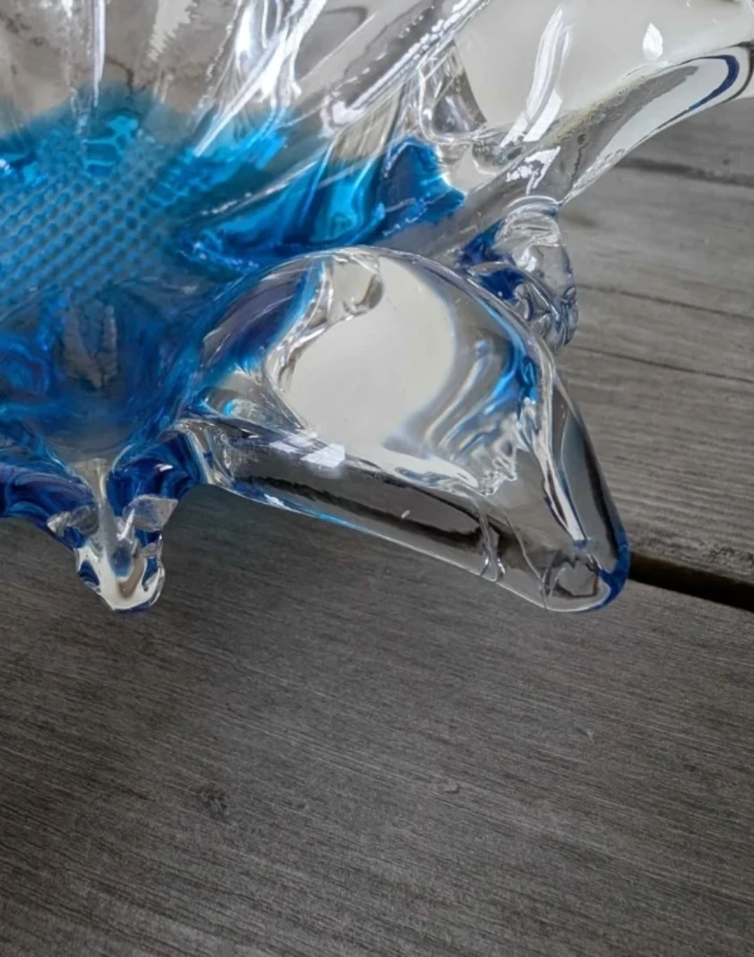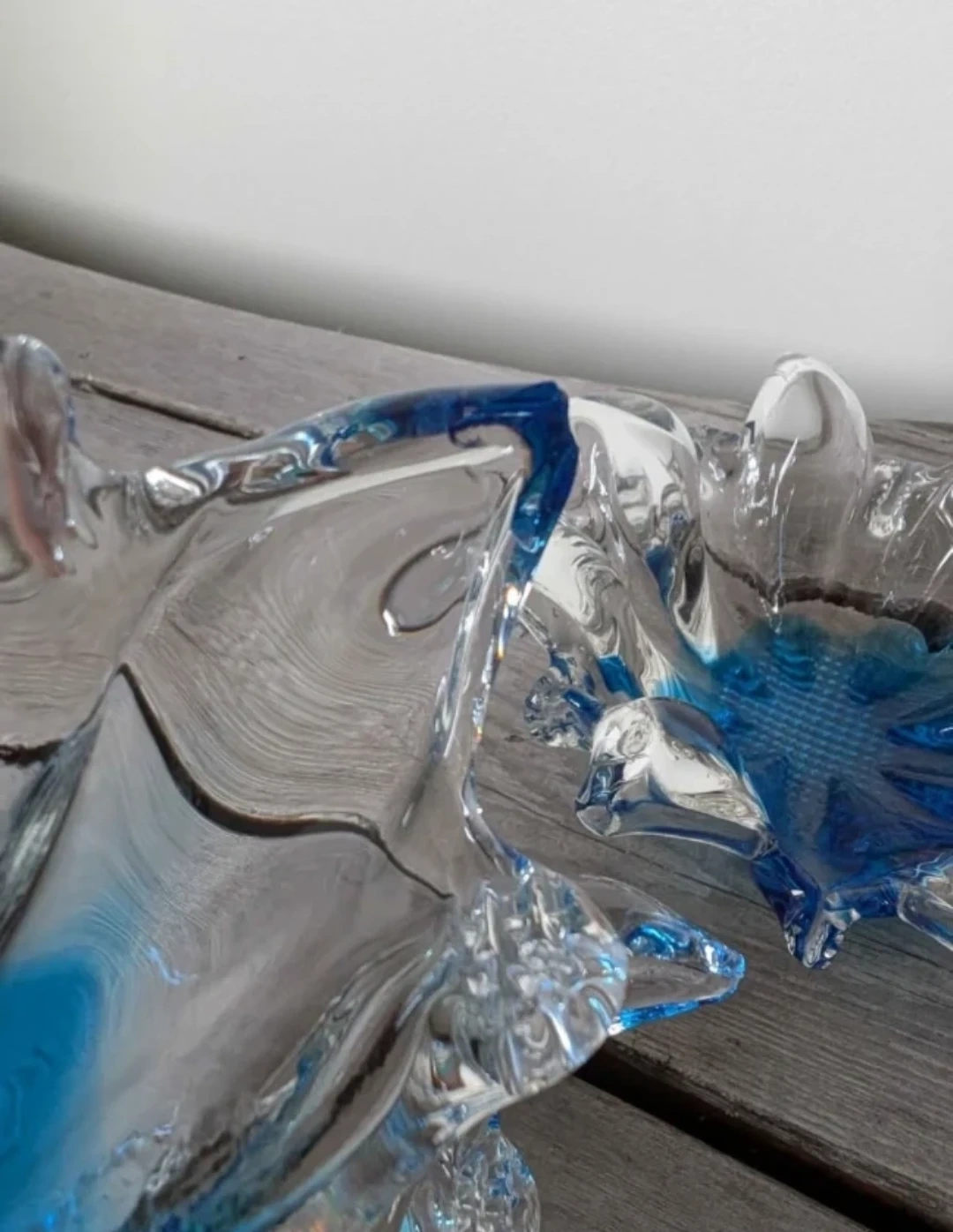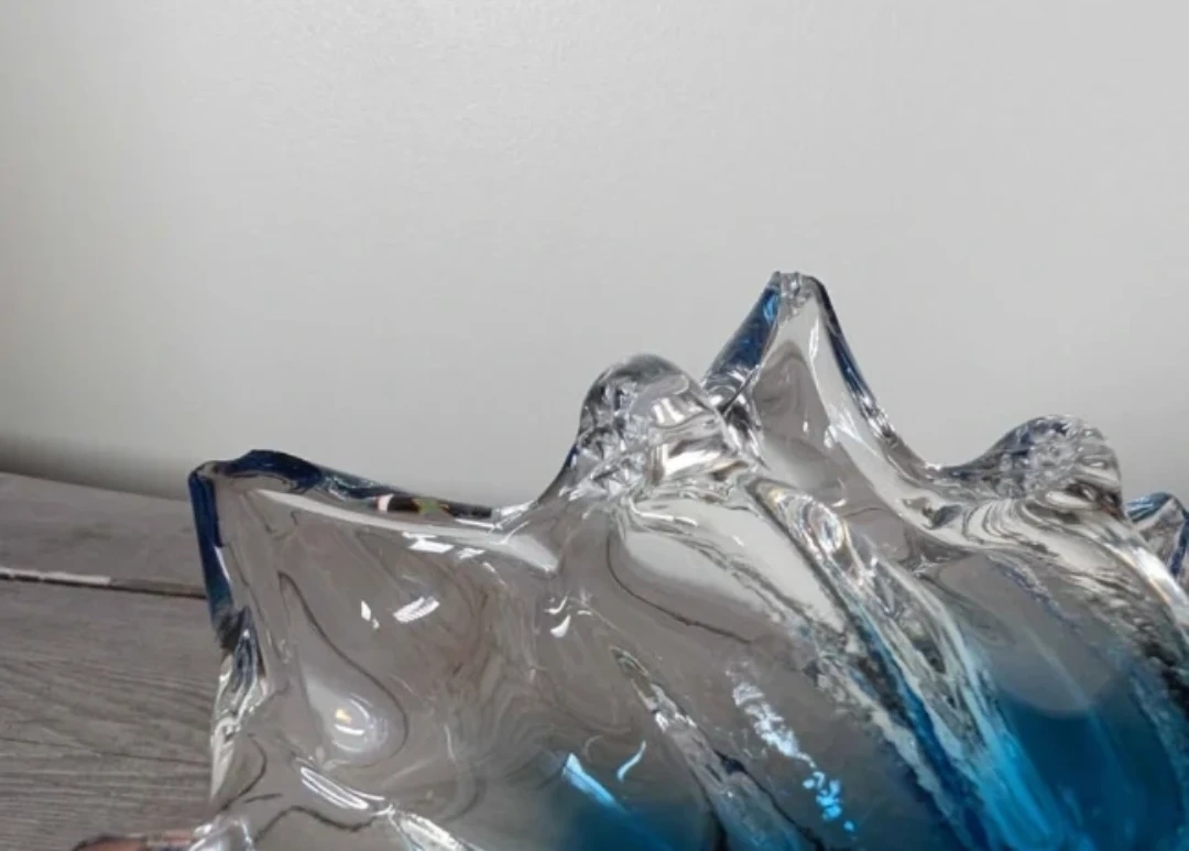 Set of 2 Vintage Blue Blown Glass. Lovely blue glass to add to your art glass collection. In decent vintage condition. Please check photos as they are part of the description. **Last 3 photos show minor chips or cracks, however it is overall hard to see when on display. Dimensions: 2 1/4" H x 7" D ➑️ Door pick up only Post a thrifty pick πŸ₯• Collect the Karrots