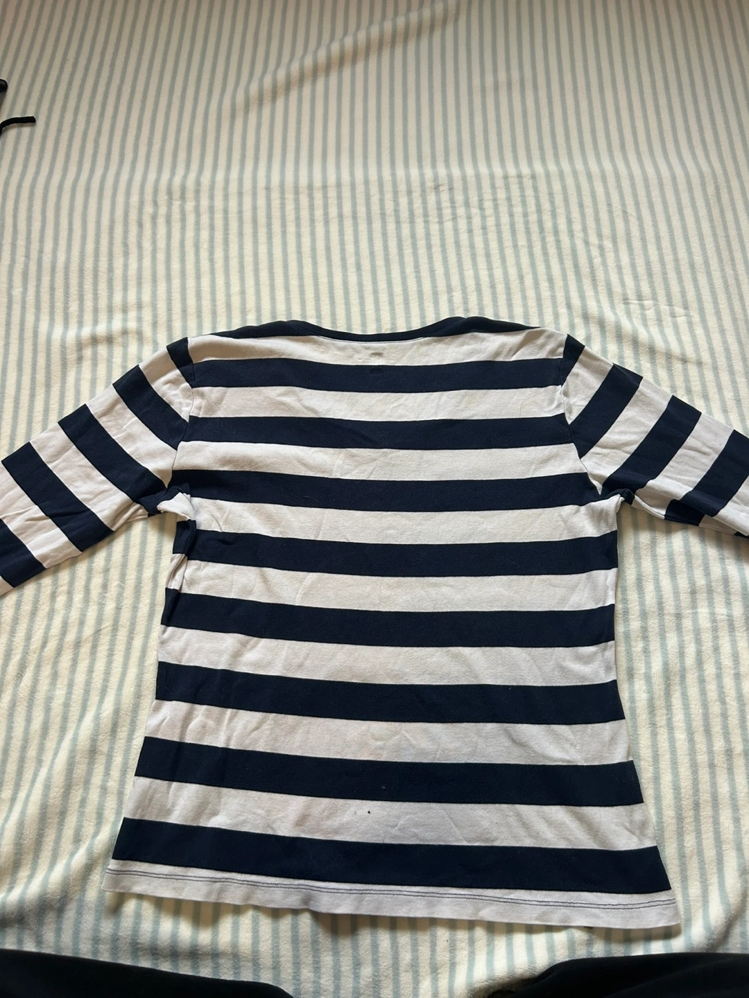 Tommy Hilfiger long sleeve top with a navy and white striped pattern! The shirt is in great condition and has a v-neck. Perfect for a casual look
