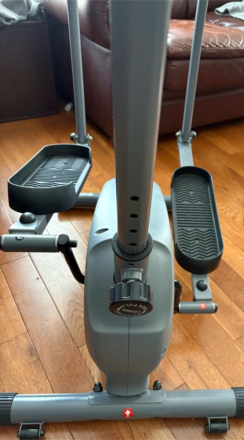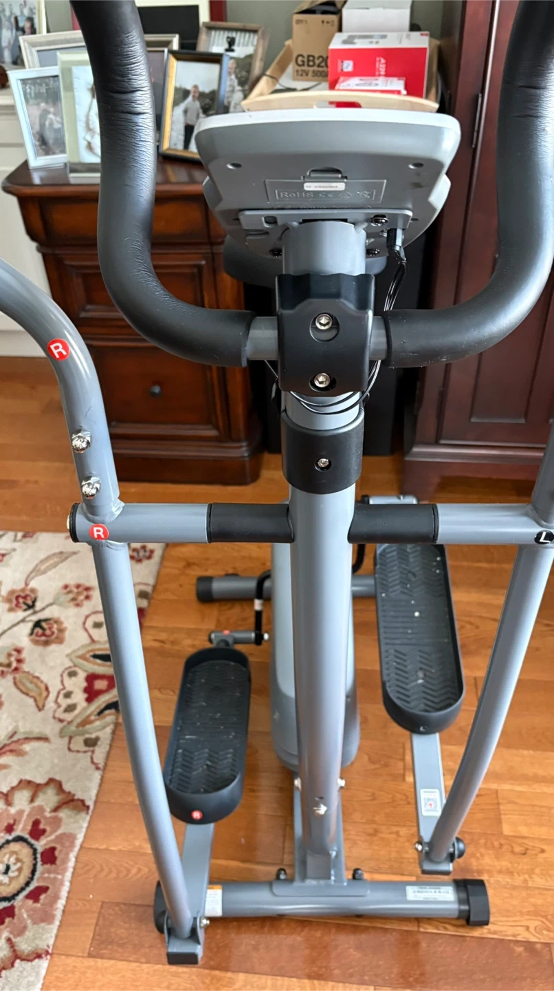 This versatile fitness machine easily transforms between an elliptical and a stationary bike for diverse cardio workouts. It features transportation wheels and a 4-way adjustable seat. Maximum user weight is 100 KG. Sold as is. The resistance tension doesn’t work. Pick up only. Cash only, no e-transfers.