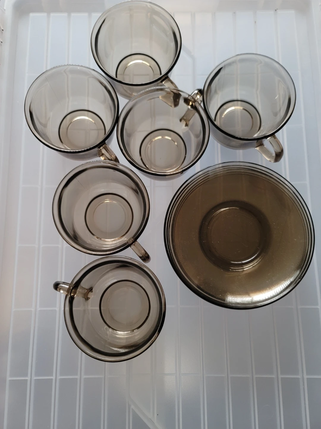 Buy & SellSmoke Glass Teacups and Saucers SetSmoke Glass Teacups and Saucers Set$3Set of six smoke glass teacups with matching saucers. Glass material. These are perfect for serving guests or for a cozy tea break.Dimensions3 inch teacups with saucersWHERE TO MEET29th Avenue StationView MapSELLERverifiedThomasRenfrew Collingwood1084 reviews0 chats·0 favorites·30 viewsSEND CHAT TO SELLERHi Thomas! I’m interested in your listing.Hi Thomas! I’m interested in your listing.Get the Karrot app to chatSign In to chat