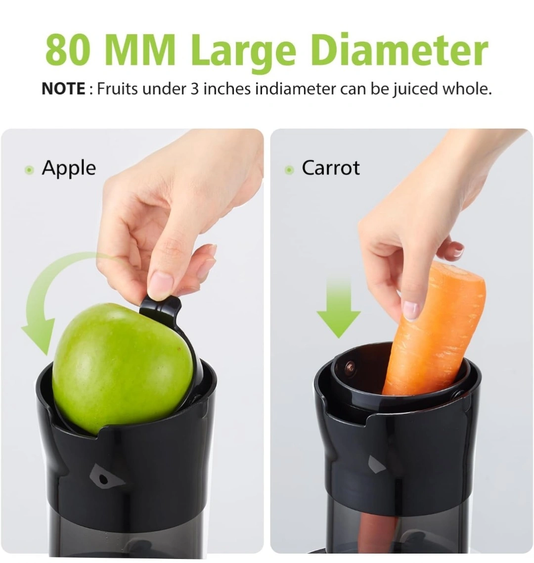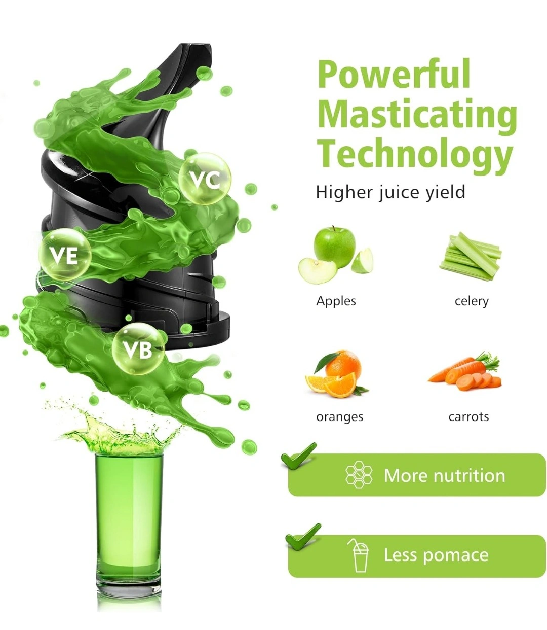 229Powerful masticating juicer. Low-noise operation. Extracts more juice and nutrients. Easy to clean. 80mm feed chute. Includes two filters for different juice consistencies.