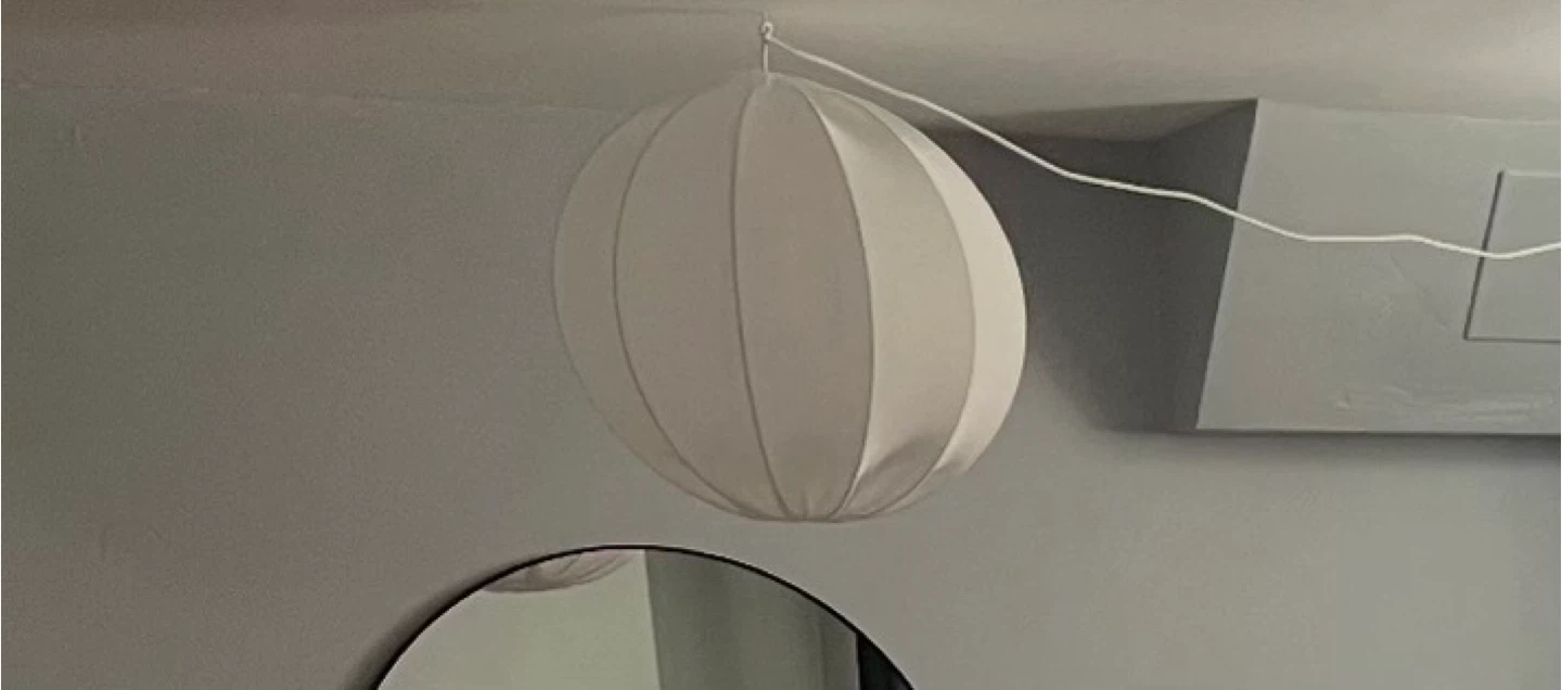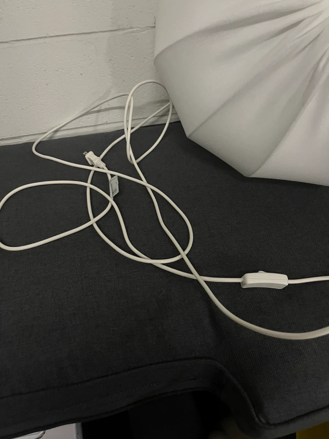 Here's a simple and stylish white fabric pendant lamp! It would be a great addition to any room. It's in great condition and ready to brighten up your space. Light bulb included