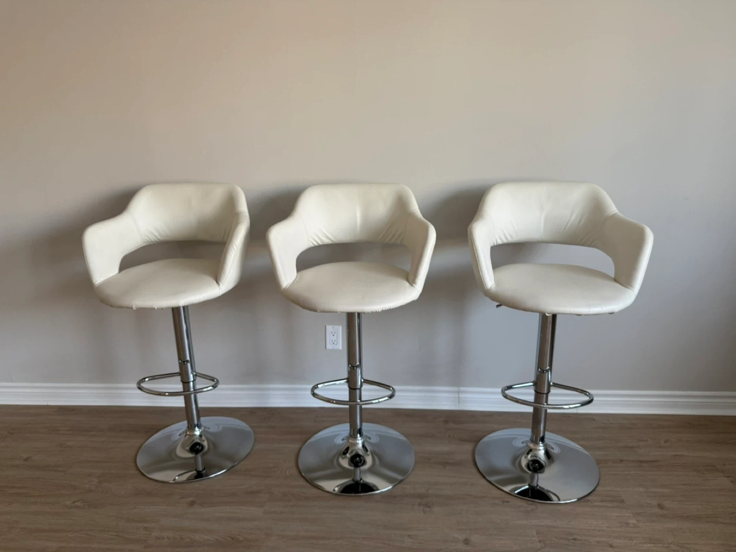 White Faux Leather Bar Stools (Set of 3)