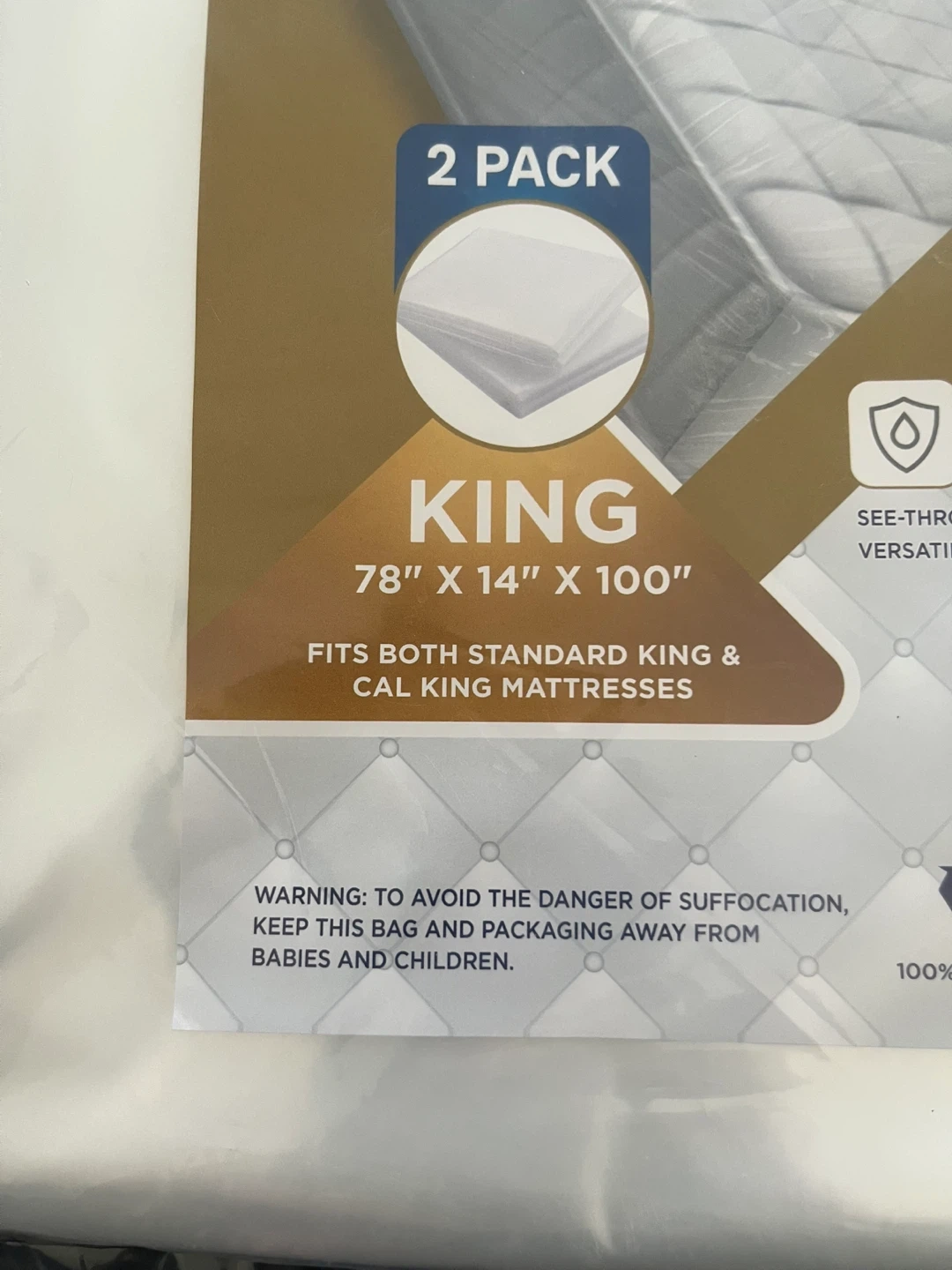 This is a 2-pack of VicMore King size mattress bags. They fit both standard King and Cal King mattresses and are made from 100% polyethylene. These bags offer see-through protection, are versatile, and reusable, ideal for mattress storage and moving.