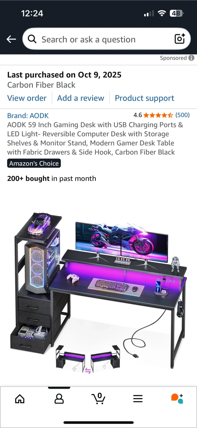 AODK 59 Inch Gaming Desk - Carbon Fiber Black