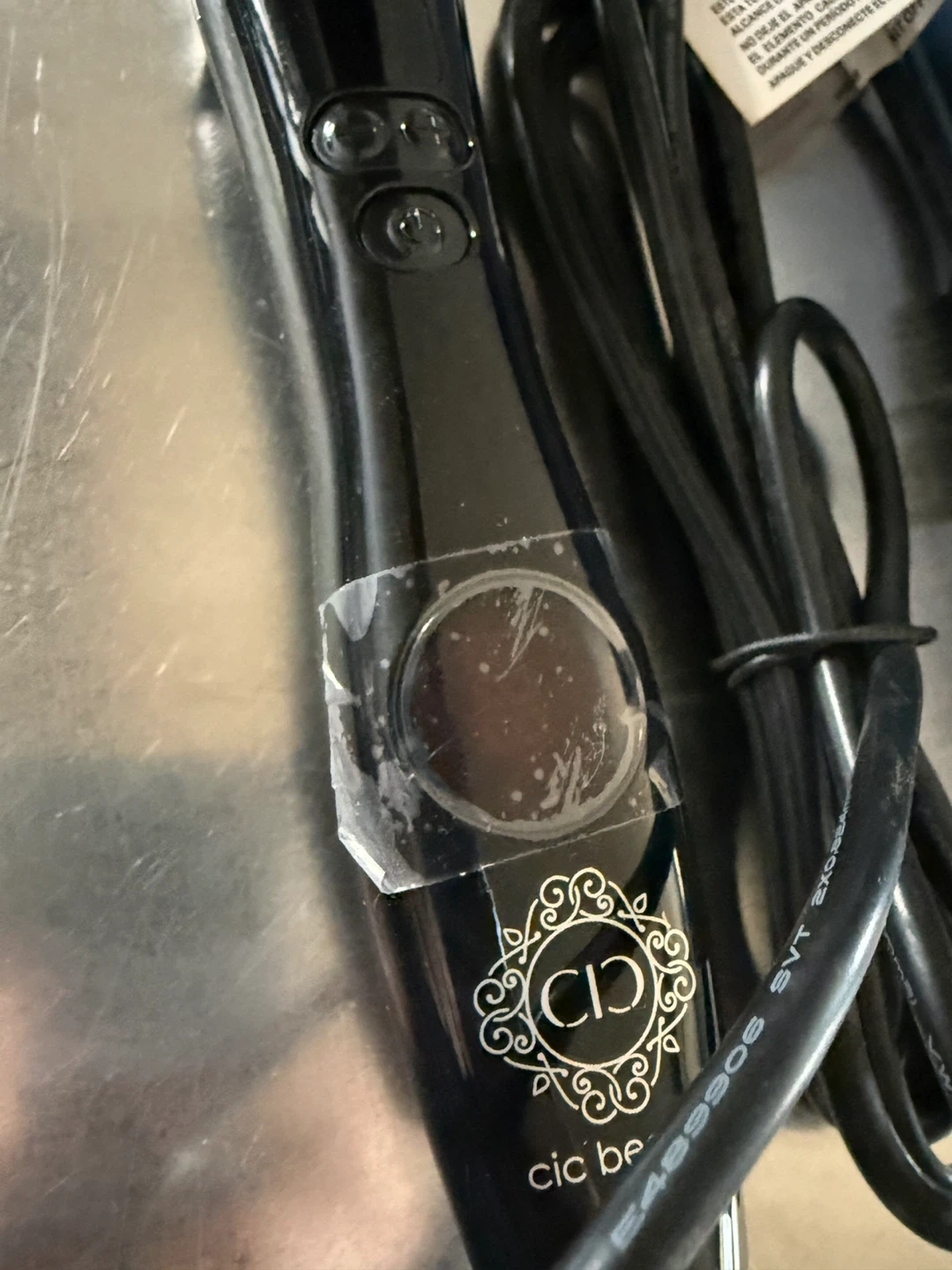 Cic Beauty curling iron, model WDC15. It's 75W and operates on 110-240V. This tool is for styling hair.